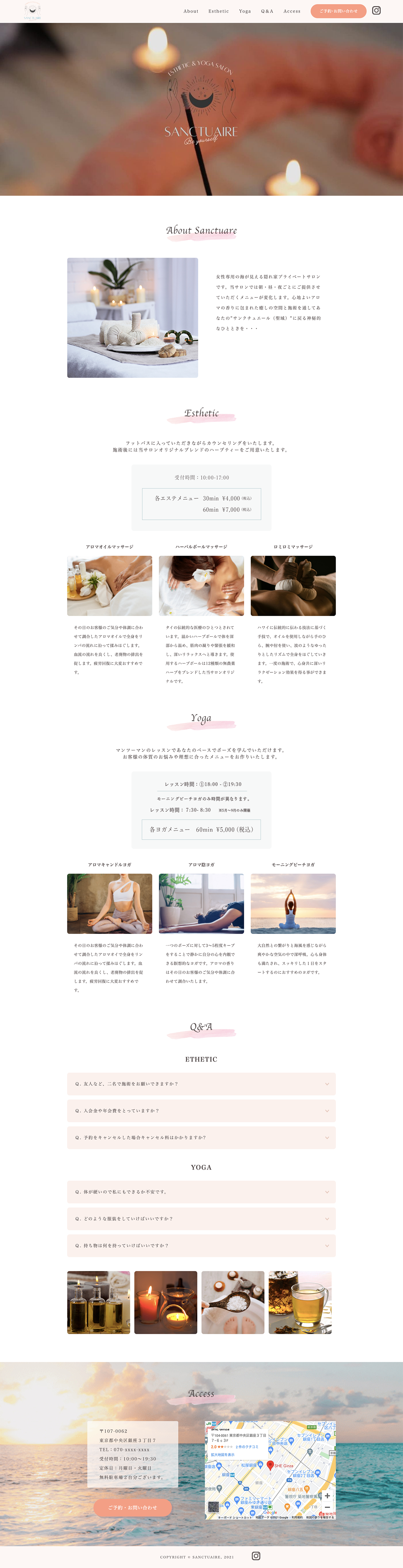 ・オーシャンビューの癒しと開放感の溢れるサロンの雰囲気や特徴を伝える為、アクセスの背景には大きな海の写真を用いました。