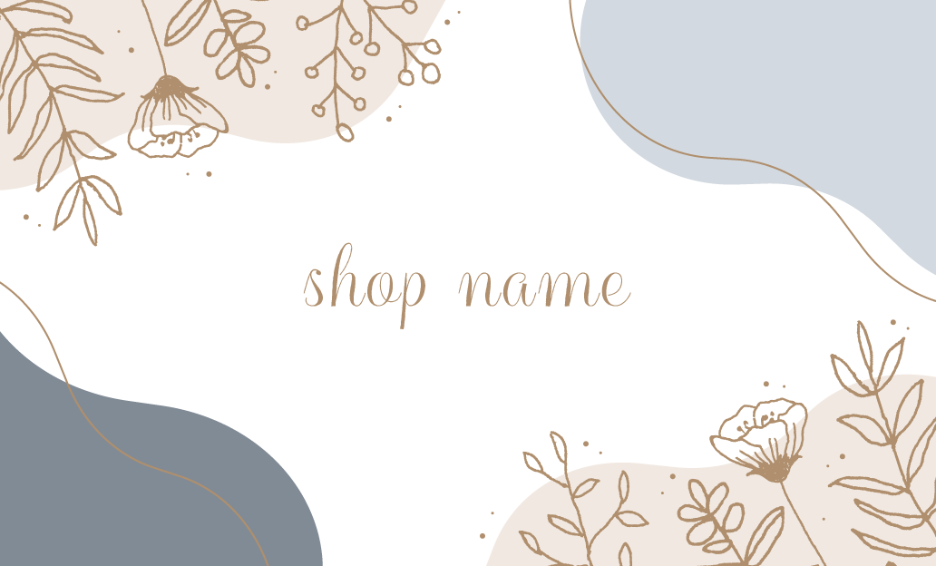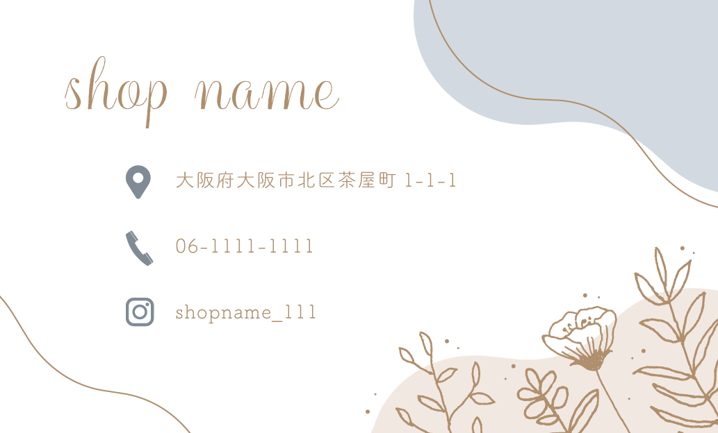 ・サロンの落ち着いた雰囲気に合わせてくすみブルーとベージュを使用。高級感を出すためにゴールドのボタニカル柄とラインをいれました。