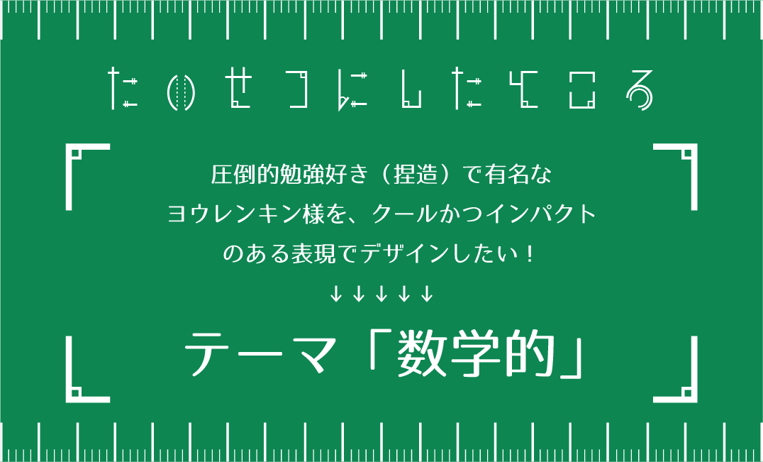 日頃勉強に取り組んでいるのが多いと聞き、「ヨウレンキン様はスマートな感じにしたろ!」っということで試行錯誤した結果、「定規に無いと困る目盛り」の奴を採用しました。まごうことなき意識の高さを感じます。