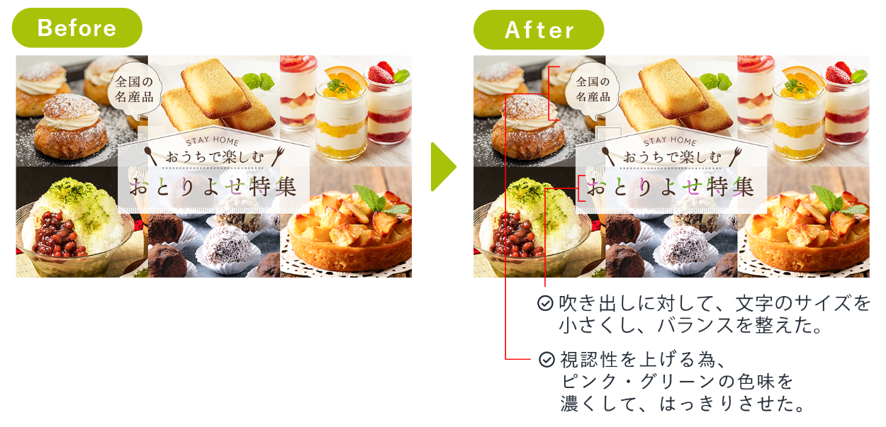 ・写真の色味を均一にして、バナーの一体感を意識しました。
