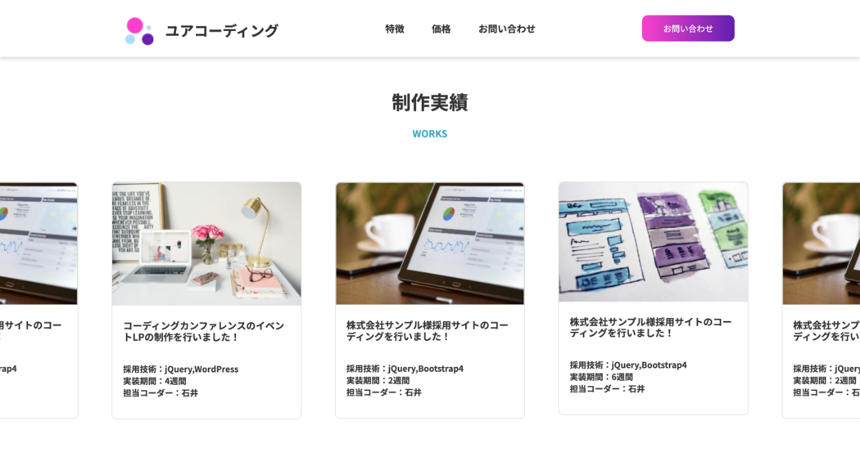 またレスポンシブ対応済みで、スマホ版のデザインはなかったため私の方で適宜調整を行ないました。
