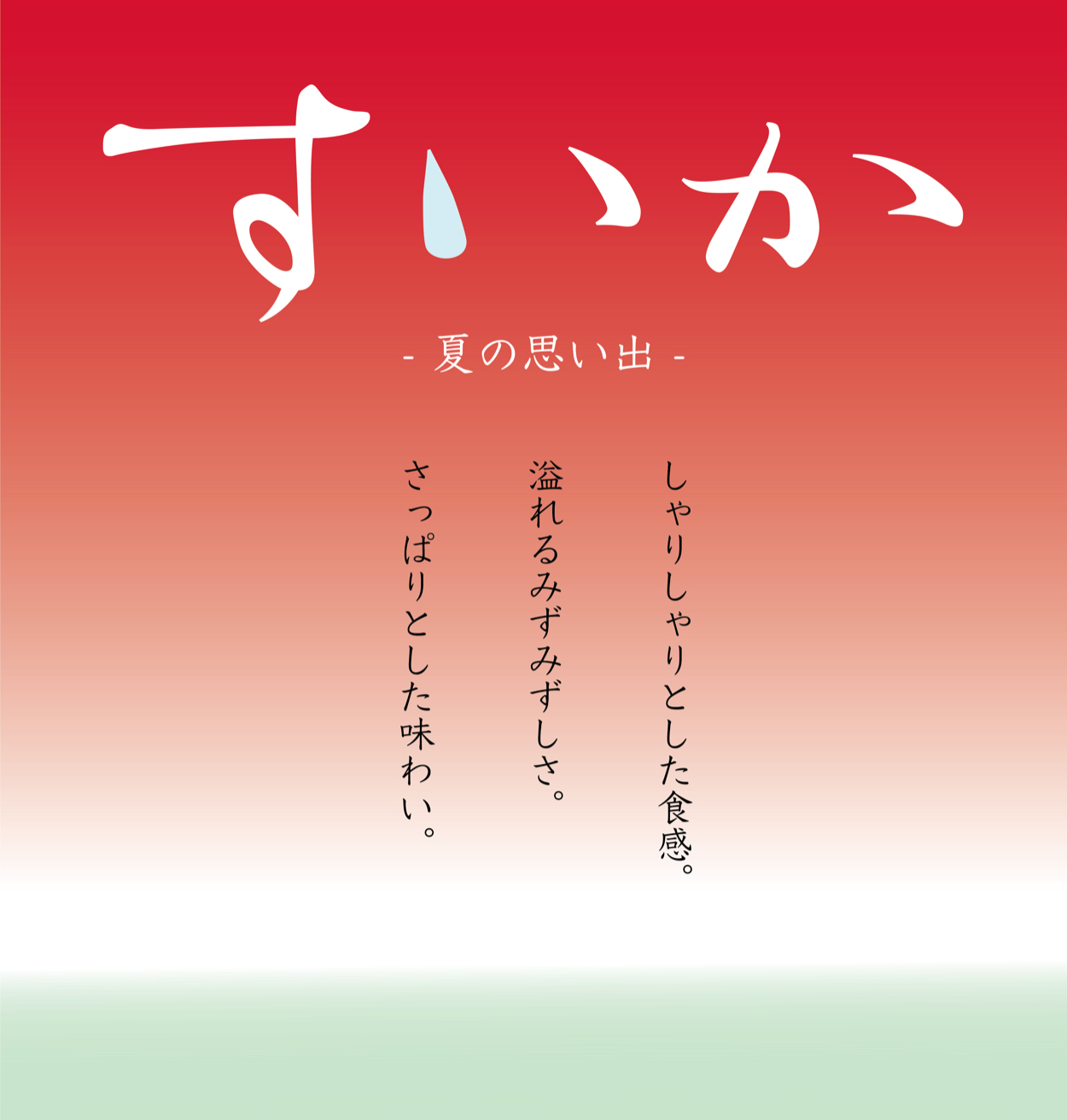 - 「すいか」の「い」の左側を薄い水色にし、夏らしさと涼しさを出す。
