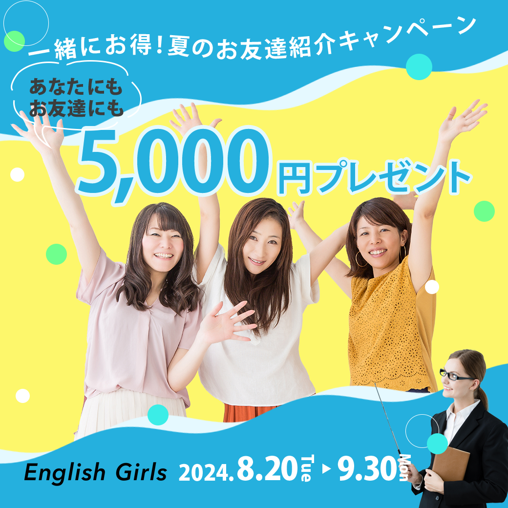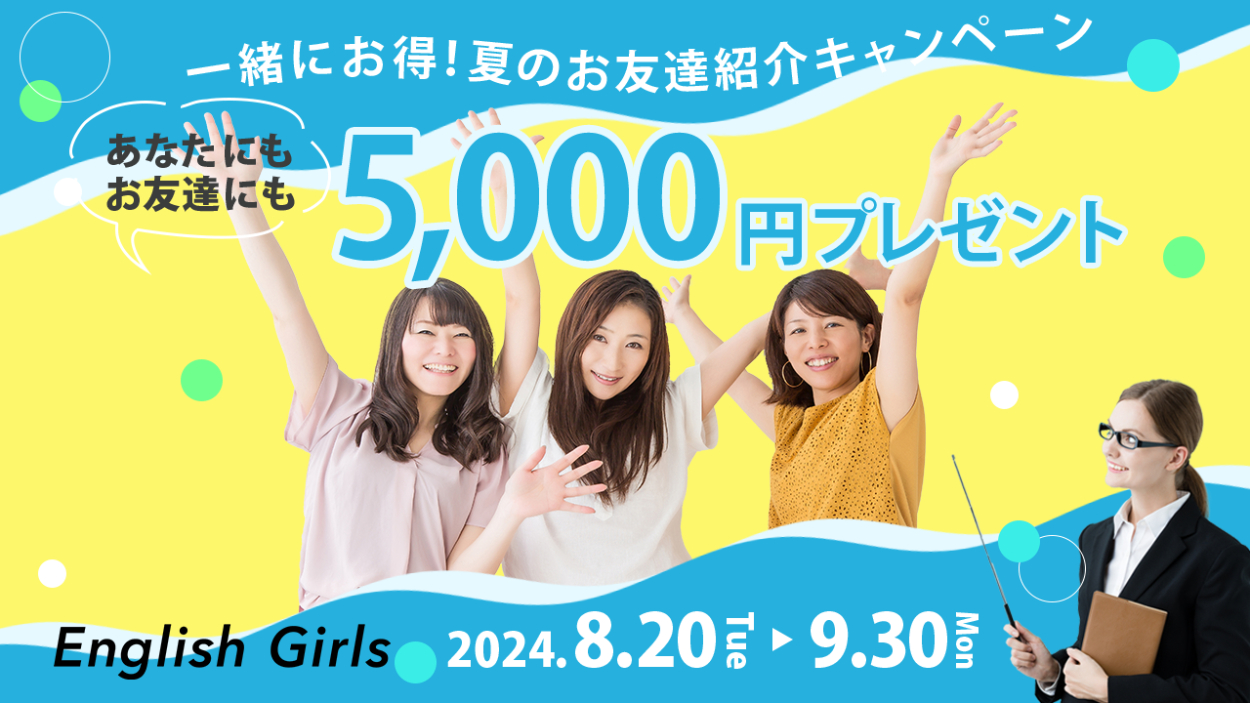 <文言>・一緒にお得!・夏のお友達紹介キャンペーン・あなたにもお友達にも5,000円プレゼント ・期間:2024年8月20日〜9月30日