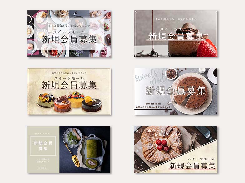 お取り寄せお菓子販売モールの会員募集のバナーを作成いたしました。