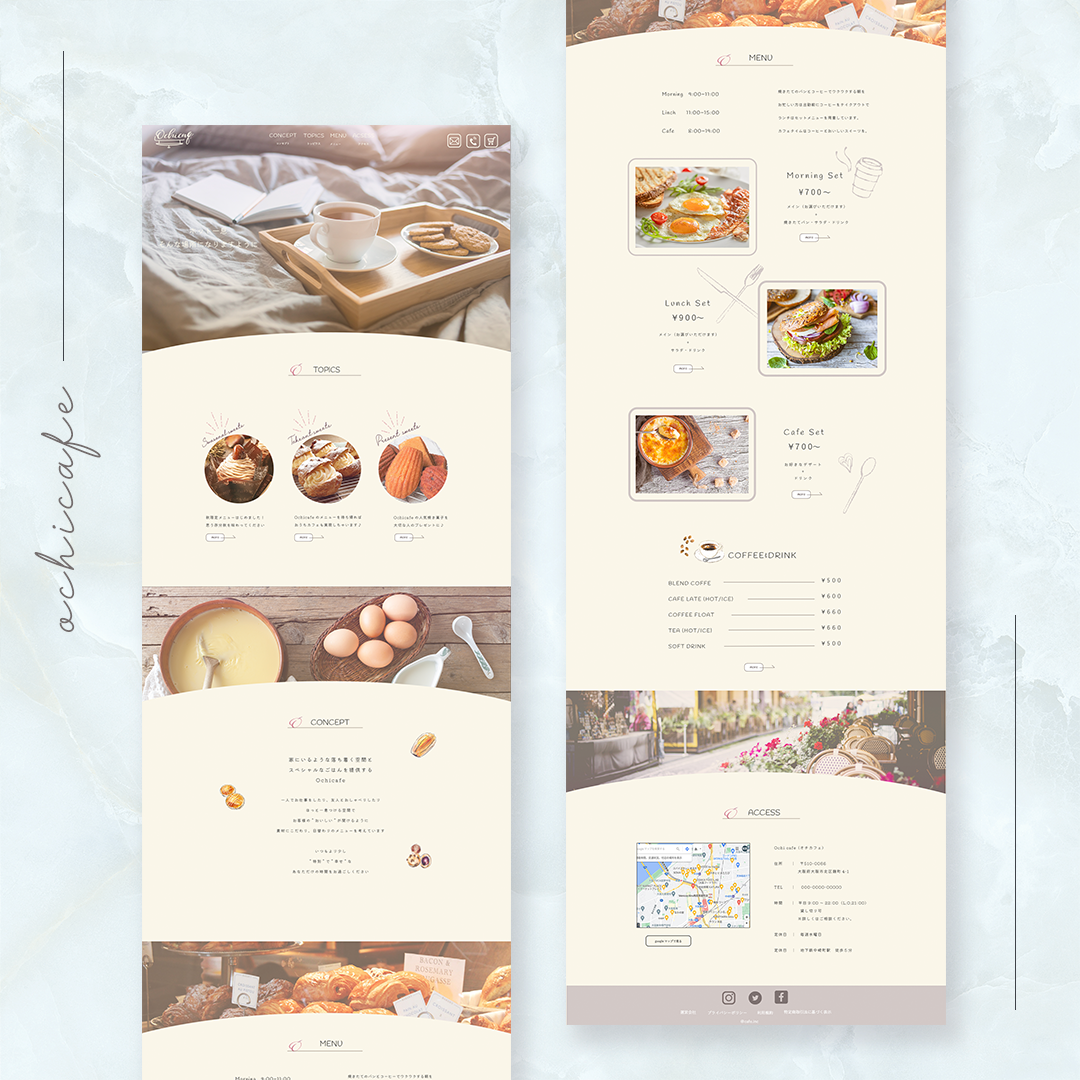 ・スクロール時に背景画像が後ろから少し見えるように見進める楽しさと店内を覗いているようなワクワク感を出せるようにした。