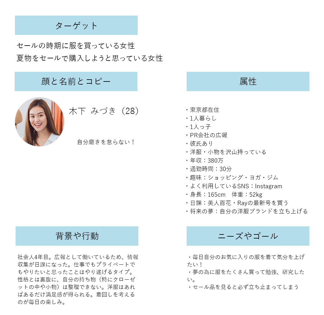 ターゲットからペルソナを設定し、さらに深堀をしました。