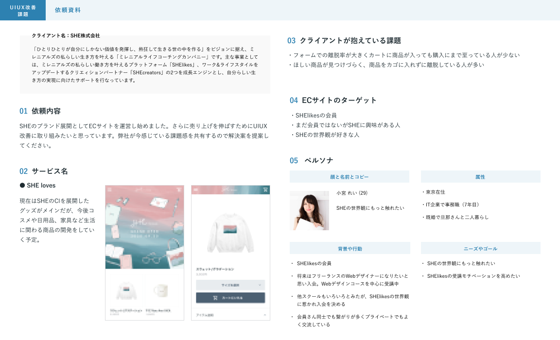 SHElikes MULTI CREATOR COURSEの課題で既存のWebサイトにおいて架空クライアントの課題の要因を考え、UIUXを提案しました。制作時間:27時間