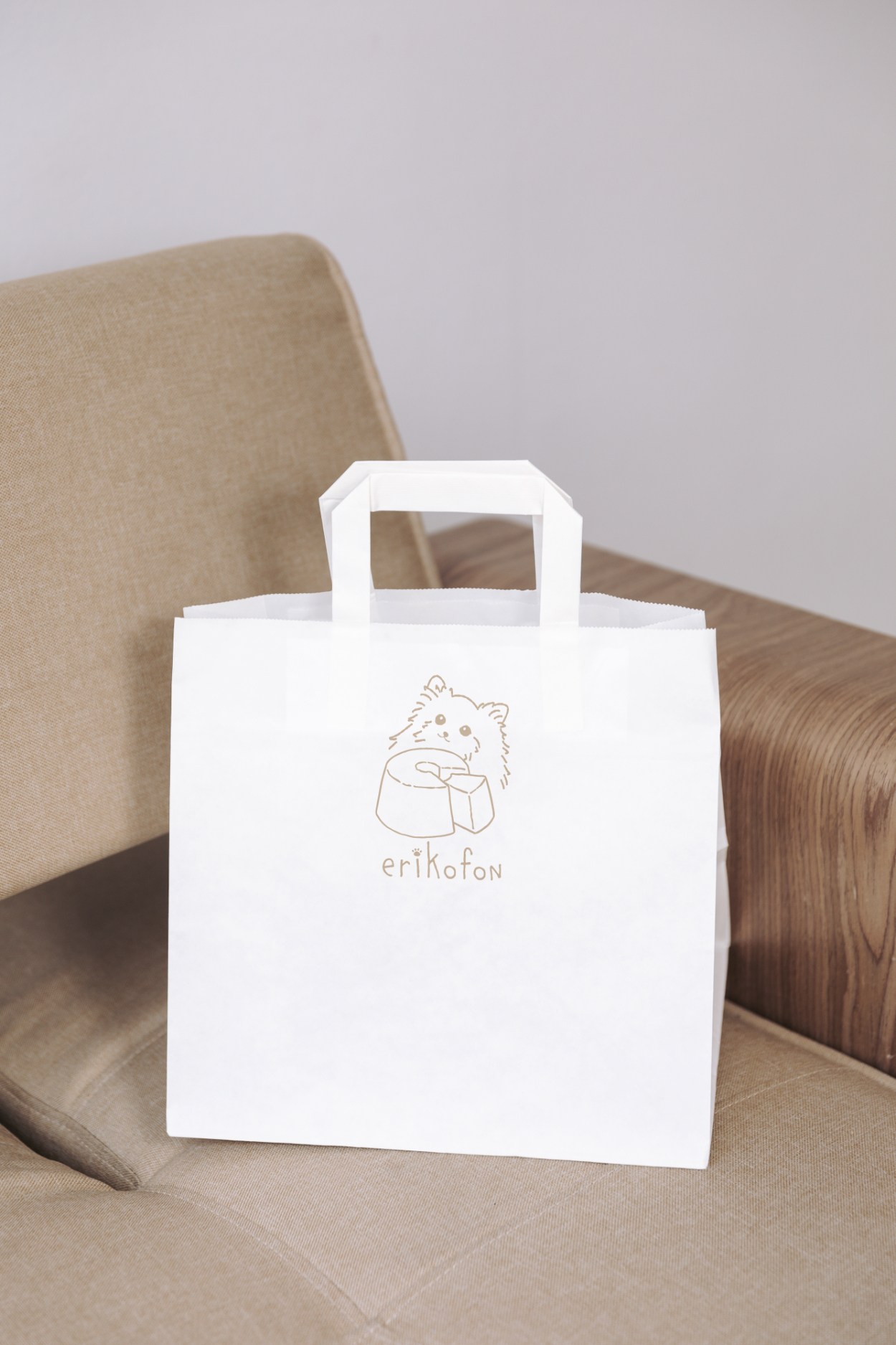erikofonさま ロゴ 片山 グラフィックデザイナー OVERVIEW マルシェでシフォンケーキを販売準備中のerikofonさまの ロゴデザインを制作させていただきました。 とっても美味しそうな、いろんな種類の素敵なシフォンケーキを焼いているerikofonさま。ふわふわのシフォンケーキとふわふわの愛犬さんを組み合わせ、優しいブラウンカラーを使用して制作しました。