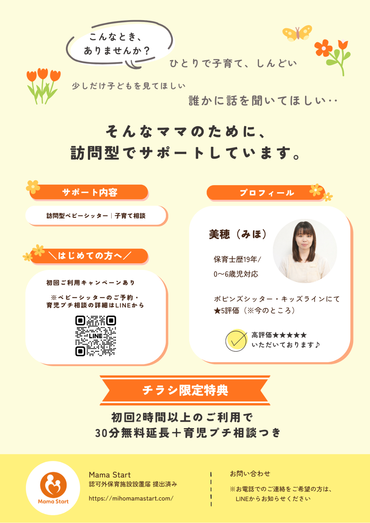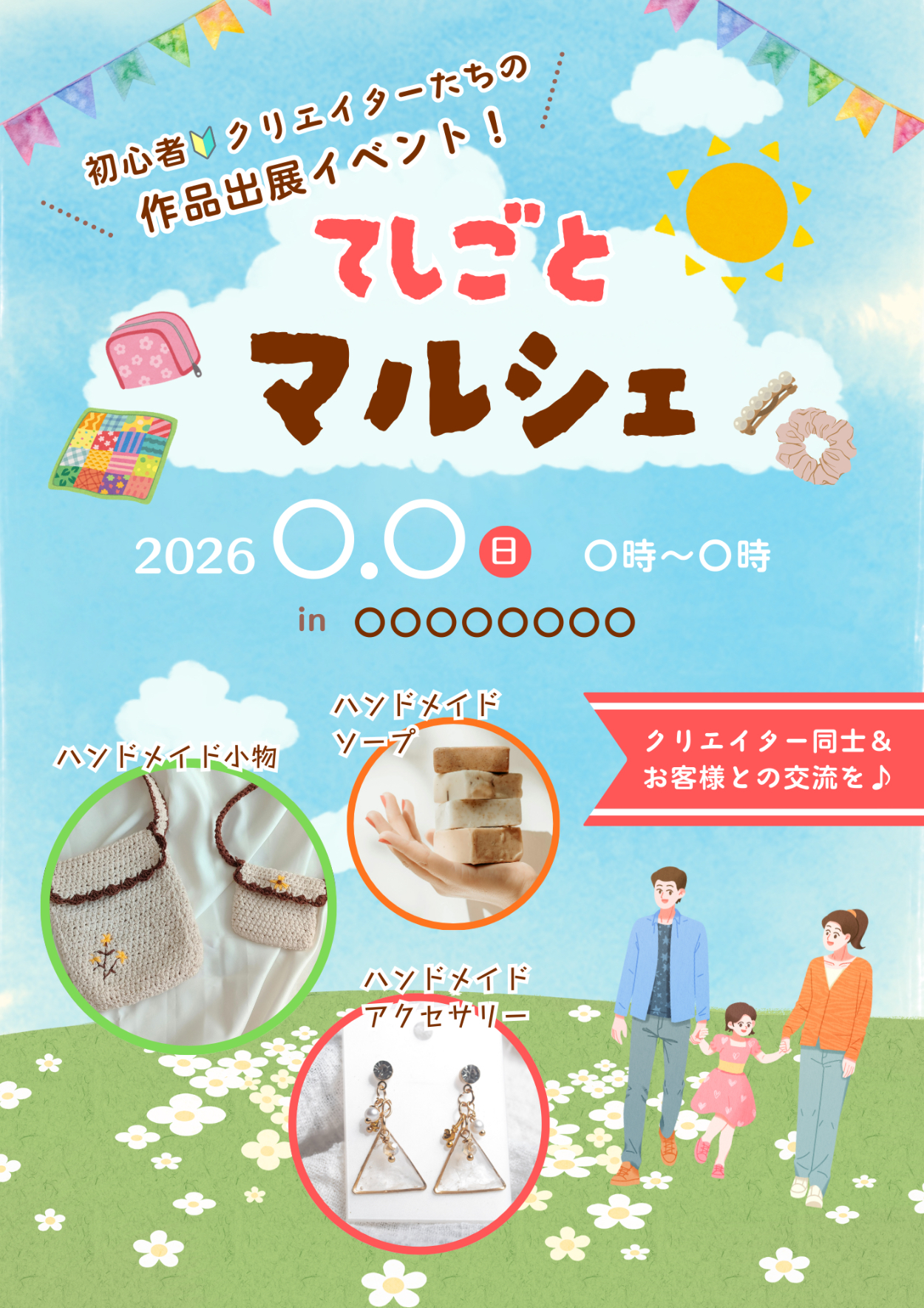 チラシデザイン集 mattari mako Webデザイナー ・ベビーシッターさん紹介チラシ(A4裏表)※ベビーシッターさんの想いや、人柄、会社のイメージをデザインに詰め込みました。・ハンドメイドクリエイターのイベント(マルシェ)のA4チラシデザイン☀️