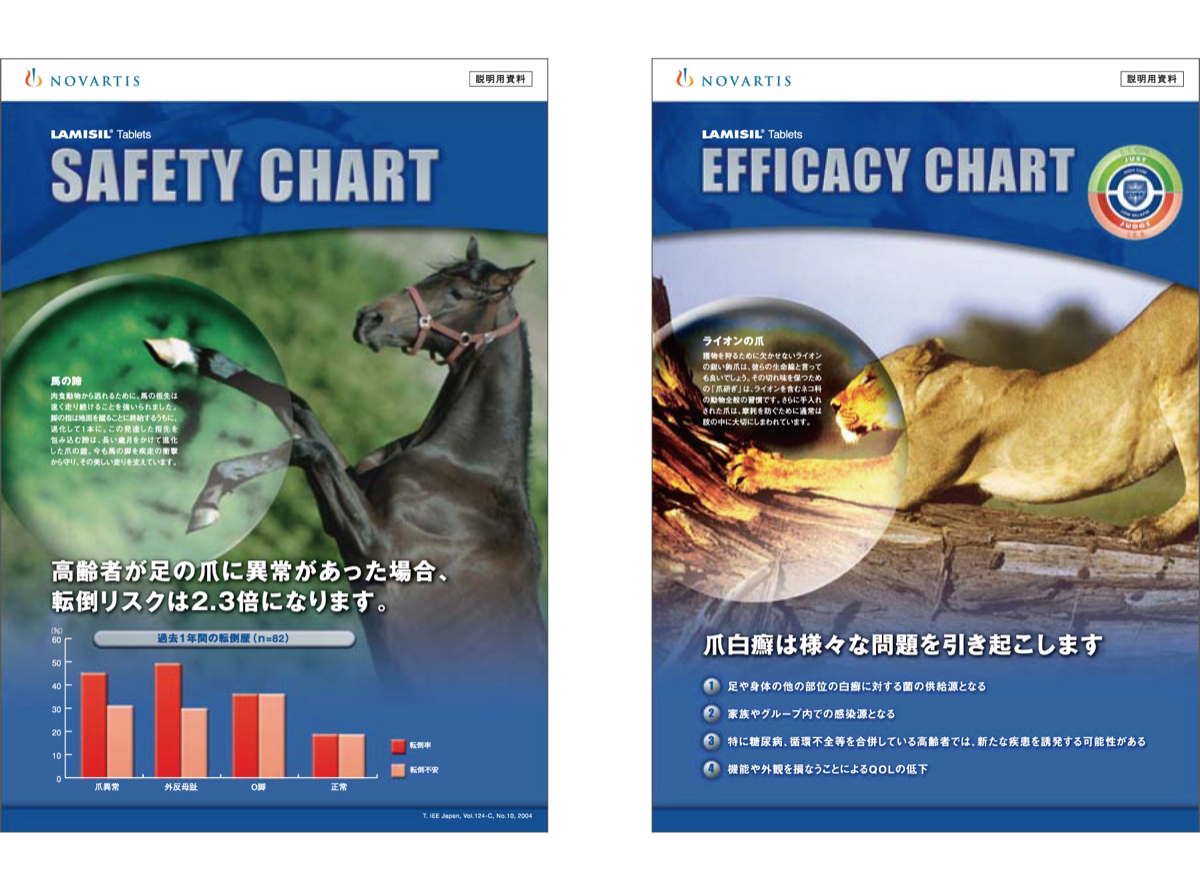 医師が患者に治療を説明するためのパンフレット 爪白癬に効くラミシールの「安全性」と「有効性」 「SAFETY CHART」と「EFFICACY CHART」表紙