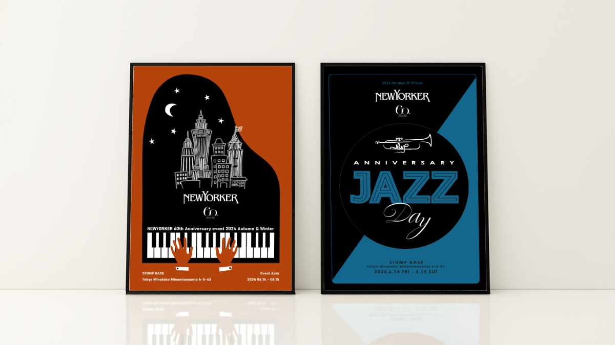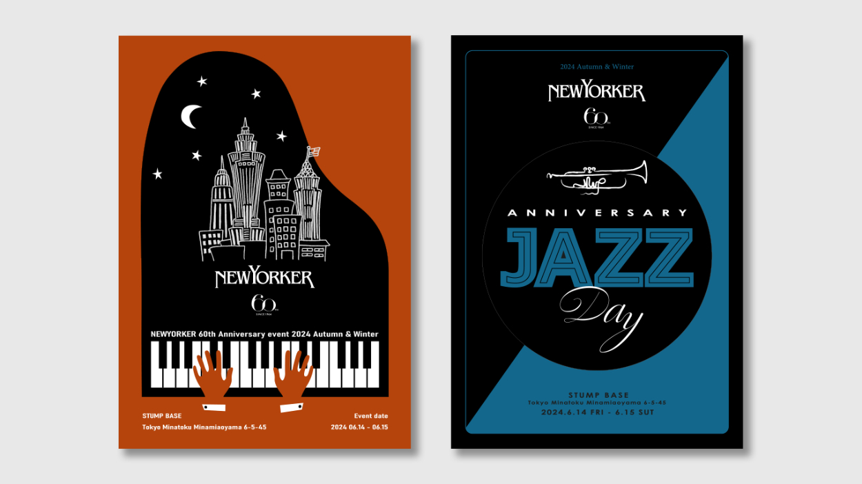 アパレルブランド「NEWYORKER」創立60周年を記念して開催されたアニバーサリーイベントの、会場演出に使用するポスターデザインを担当しました。(株式会社ダイドーフォワード様)