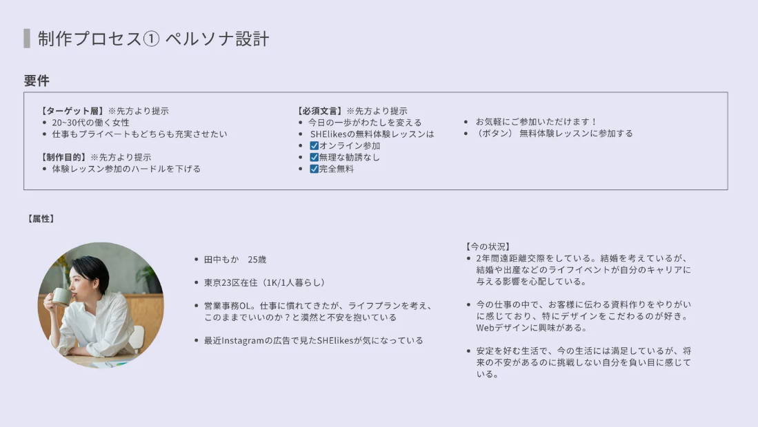 ・ターゲットである20代~30代の働く女性のイメージに近い女性の画像を使用しました。