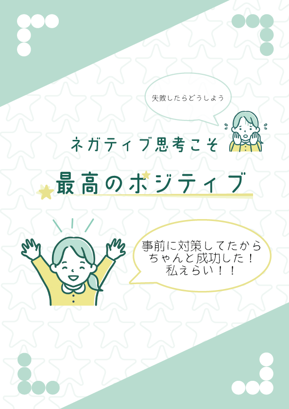 自分は元々ネガティブな性格で心配性ですが、 そのおかげで事前に準備ができるようになったり、 些細な成功がすごく幸せに感じられる ということに気が付き、それをポスターにしました。