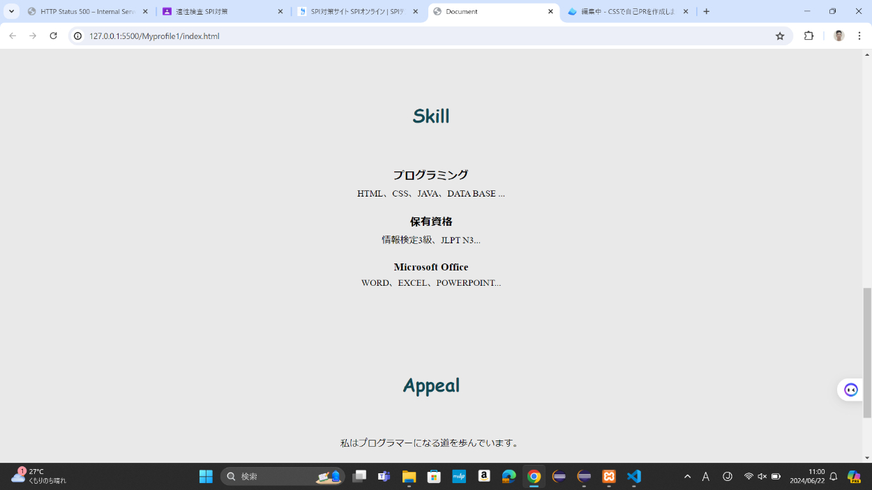 - アピール内容: "私はプログラマーになる道を歩んでいます。"(私はプログラマーになる道を歩んでいます)。