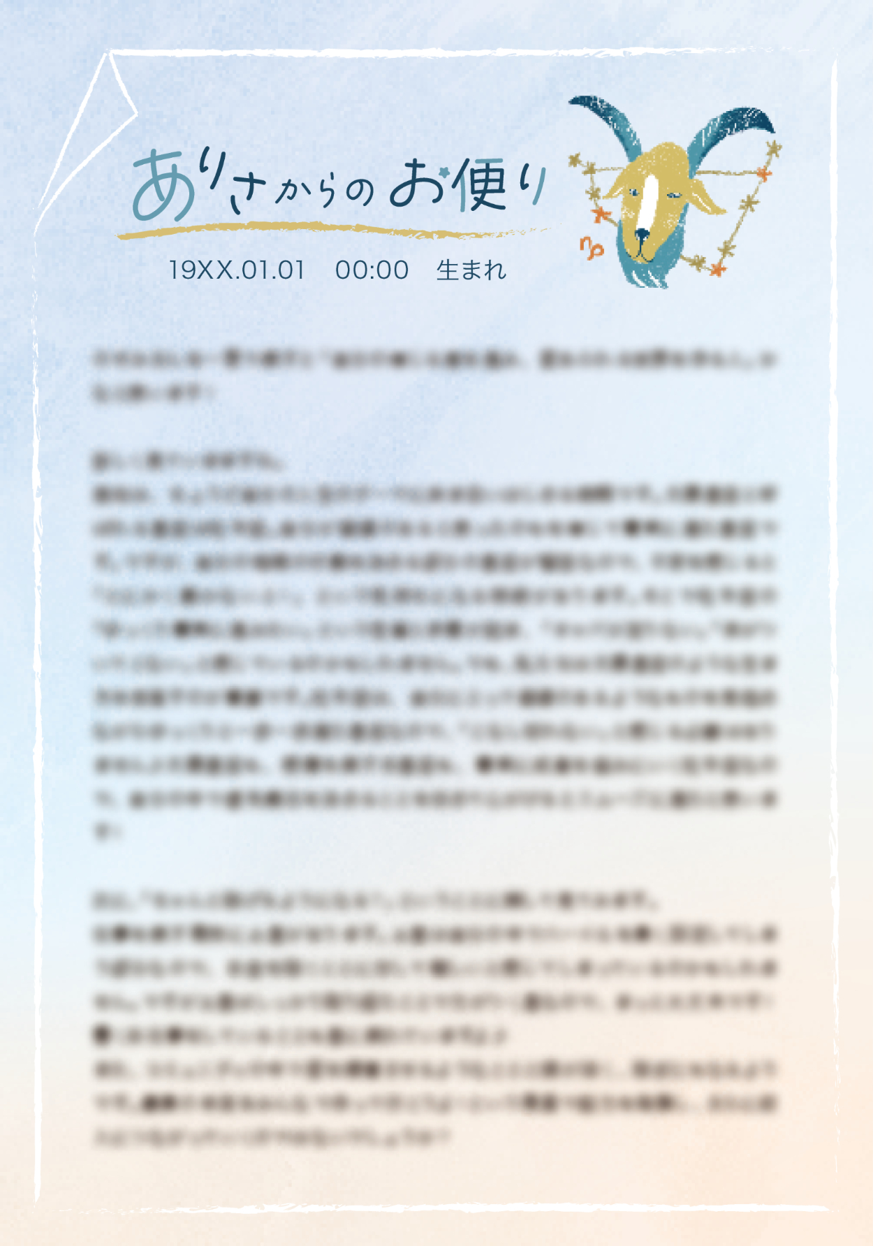 - 12星座のイラストに合わせ、タイトルやフレームはクレヨン風で統一