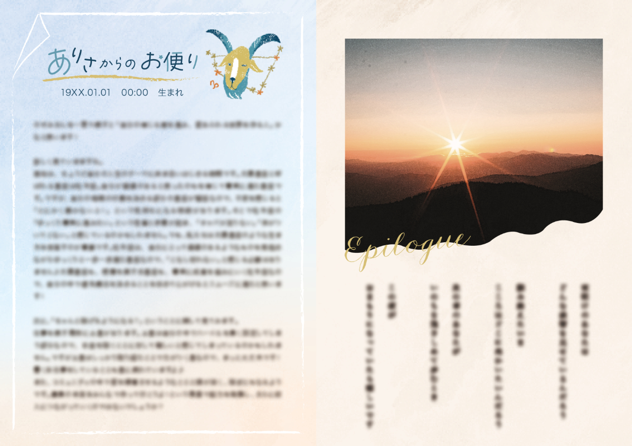 - タイトルとイラストは「夜」から届いたお便りとして、夜の名残の濃い目のカラーを設定