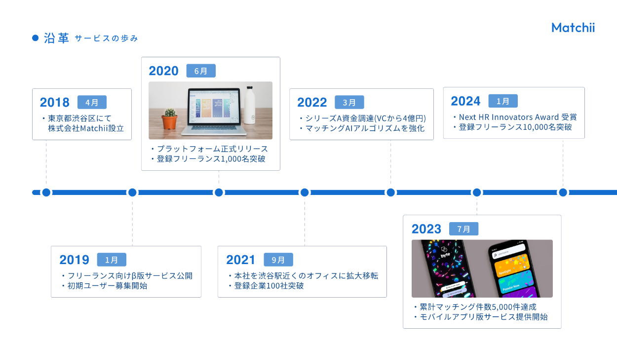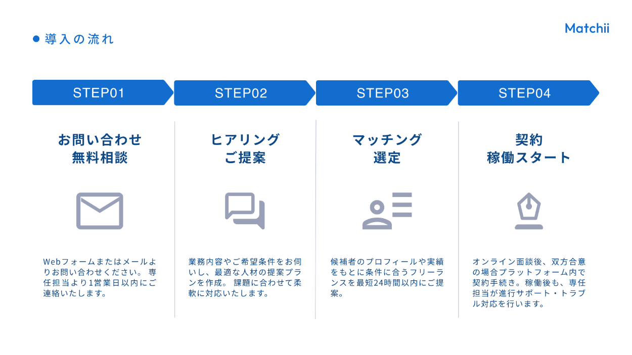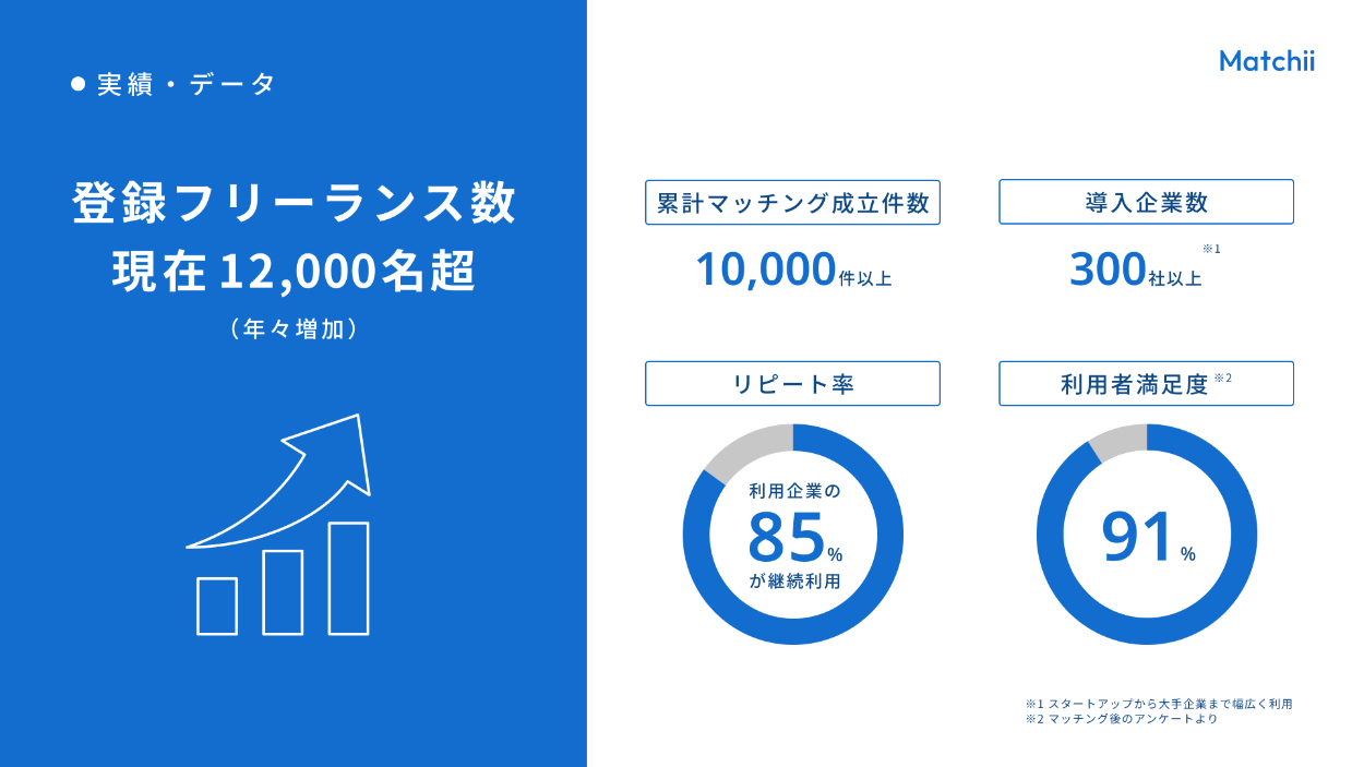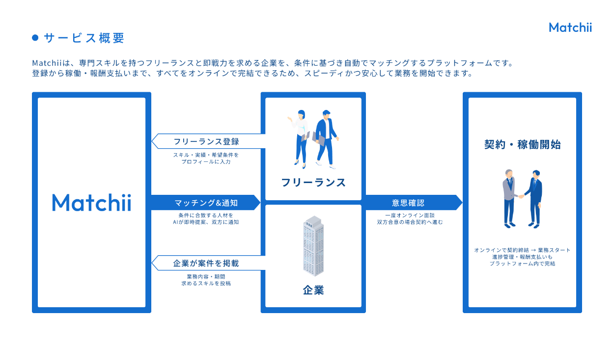・「Matchii」と「フリーランス」「企業」の関係性を、矢印や色で区別して図解にしました。