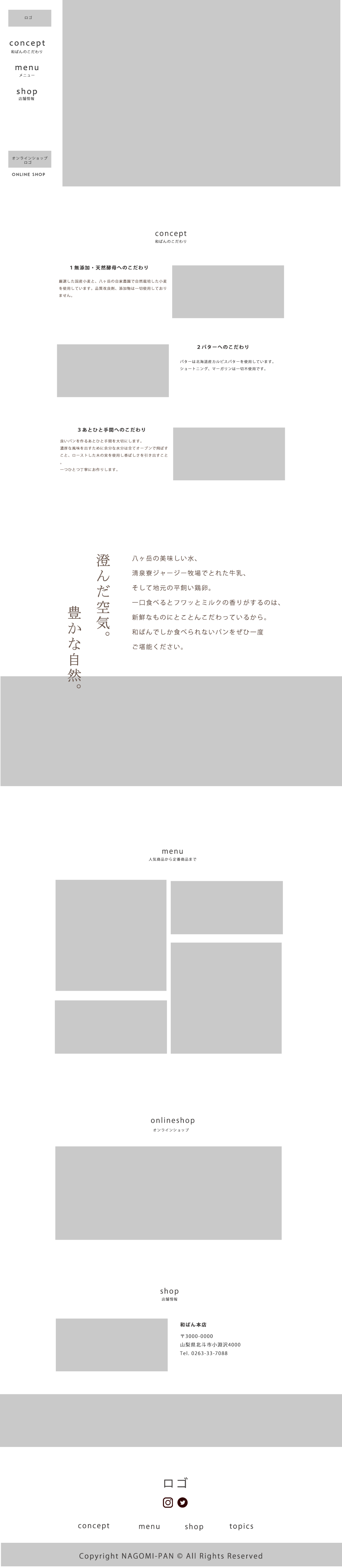 ・余白と茶色を基調にした配色で、和やかさを演出しつつ、こだわりを伝えるため、文字数は極力なくす。