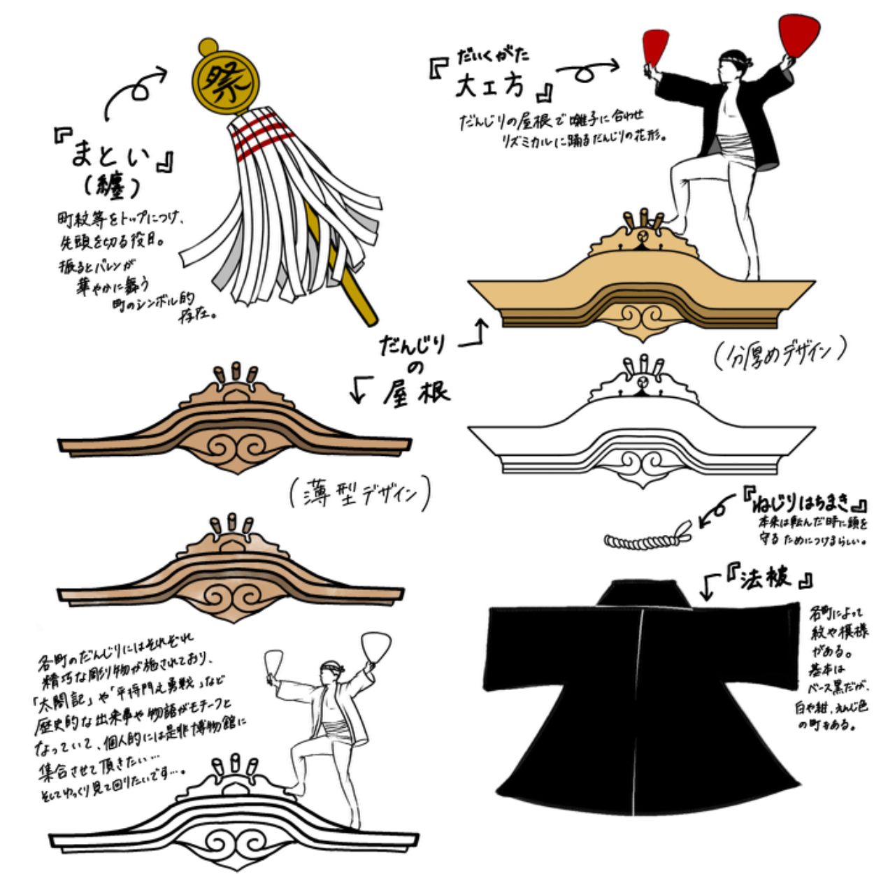 他にも、全国的に有名なだんじり祭の特別放送のロゴや、ジングルなどに使われたイラストや、ホームページのWebデザインを担当した折に描いたイラストなどもあり、力強い岸和田のイメージで制作。今でも広告や番組誌などで活用を続けてくださってるとのことです。