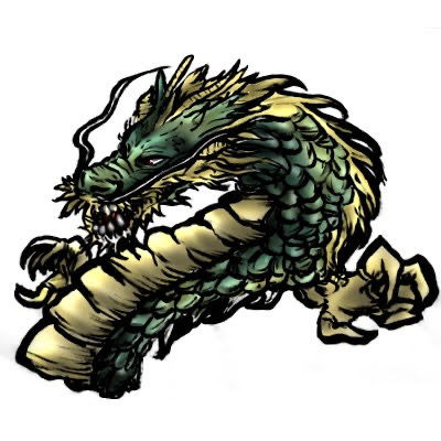 こちらの龍はジングル用で習字筆で書いたものをスキャンし、着色したものです。実際使われたものは白黒の線画でした。