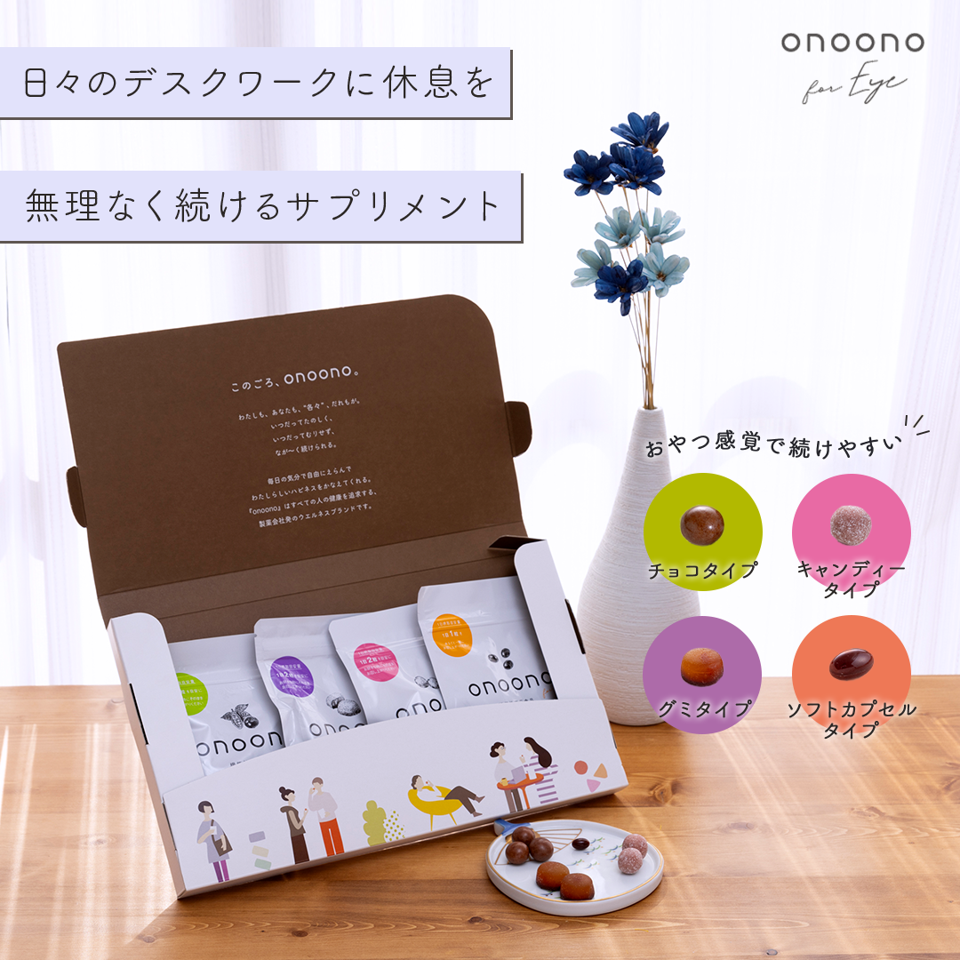 ・タイプ名が「おやつ感覚」を想像しやすいと考え、粒の形状やタイプ名を表記して、毎日摂取することが苦にならないように構成しました。