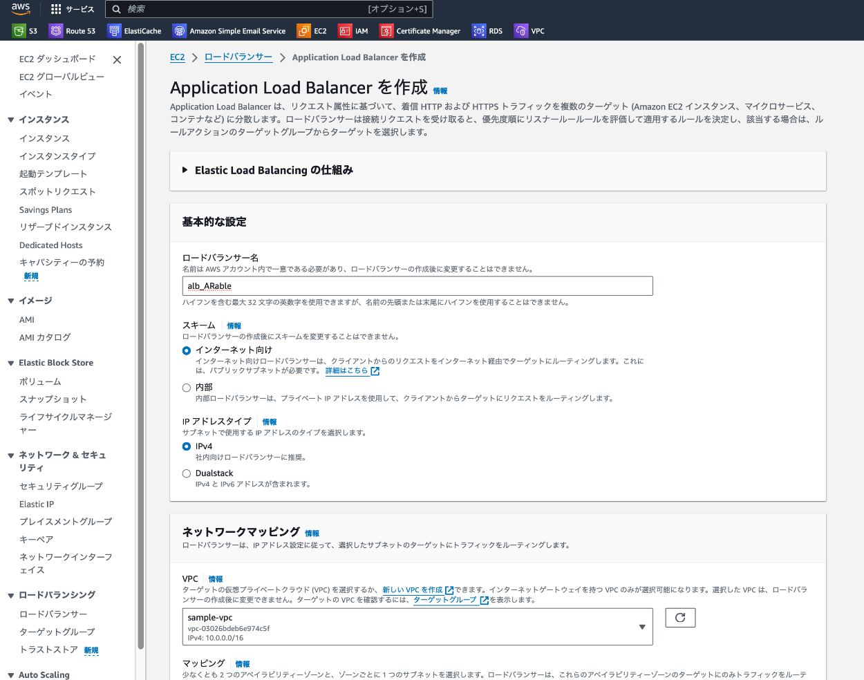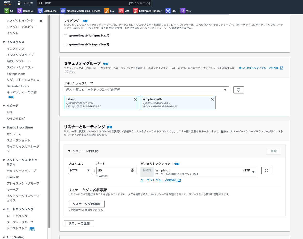 ターゲット(ネクストホップ)として2つのWebサーバが指定されたセキュリティグループを指定します。リッスンには80番ポートを指定します。
