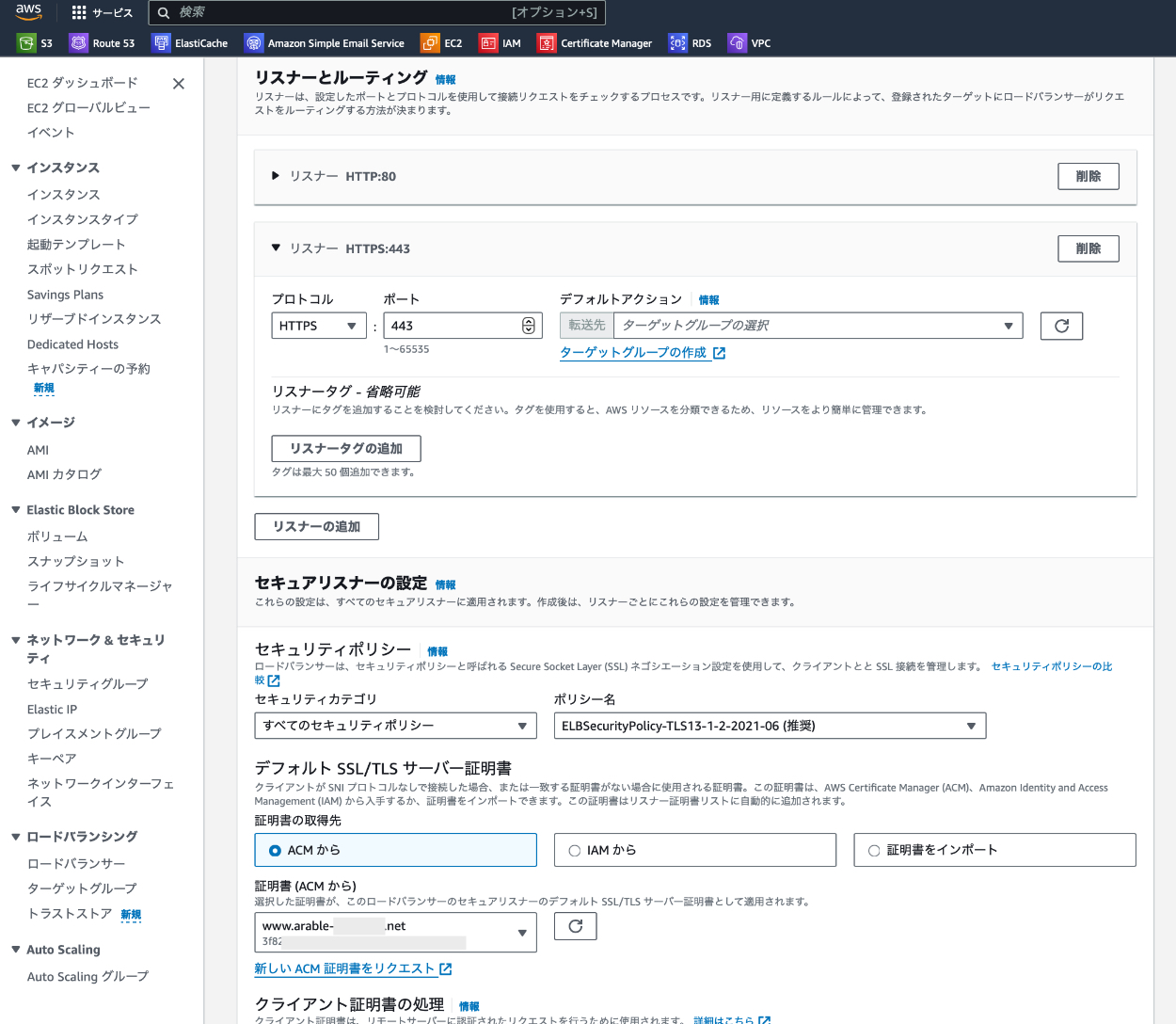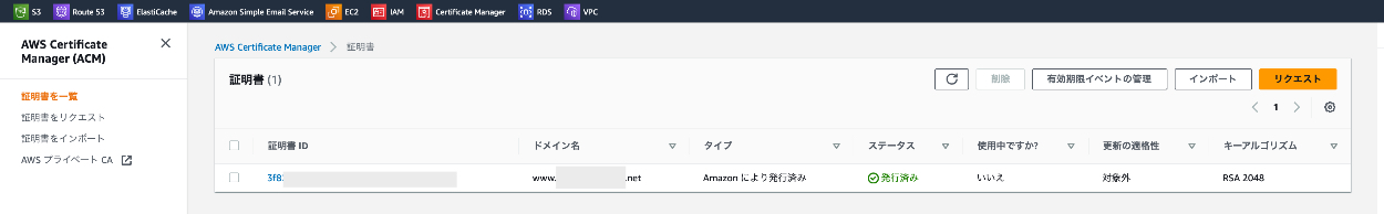 Route53で取得したドメインを用いて認証し、取得した電子証明書 ↓