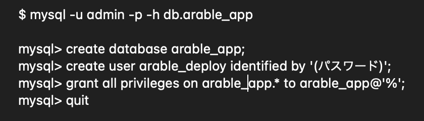 MySQLデータベースにテーブルを作成するために以下のコマンドを実行します。