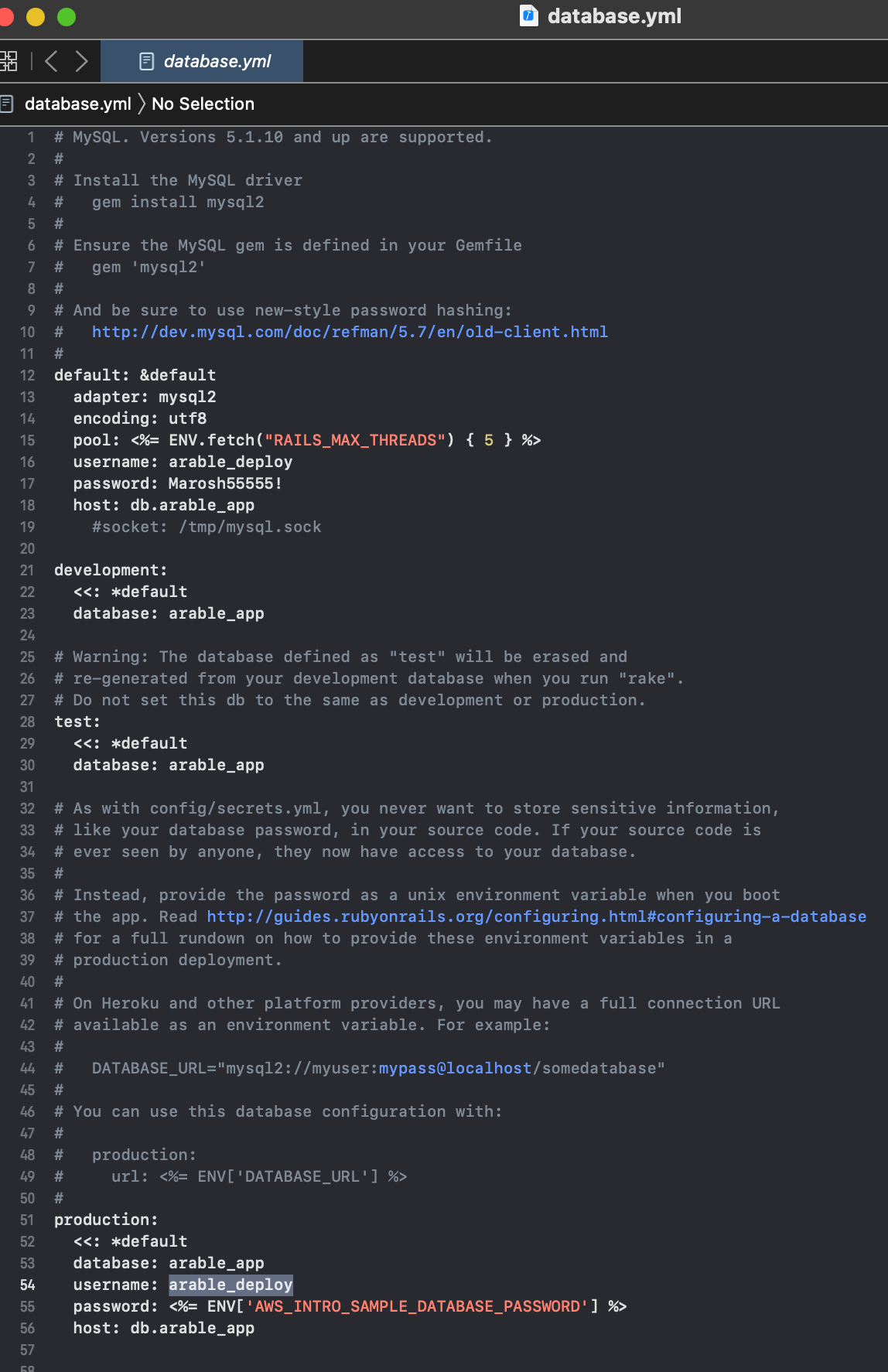 Railsアプリケーション内のconfig/database.ymlには以下のように記述します。
