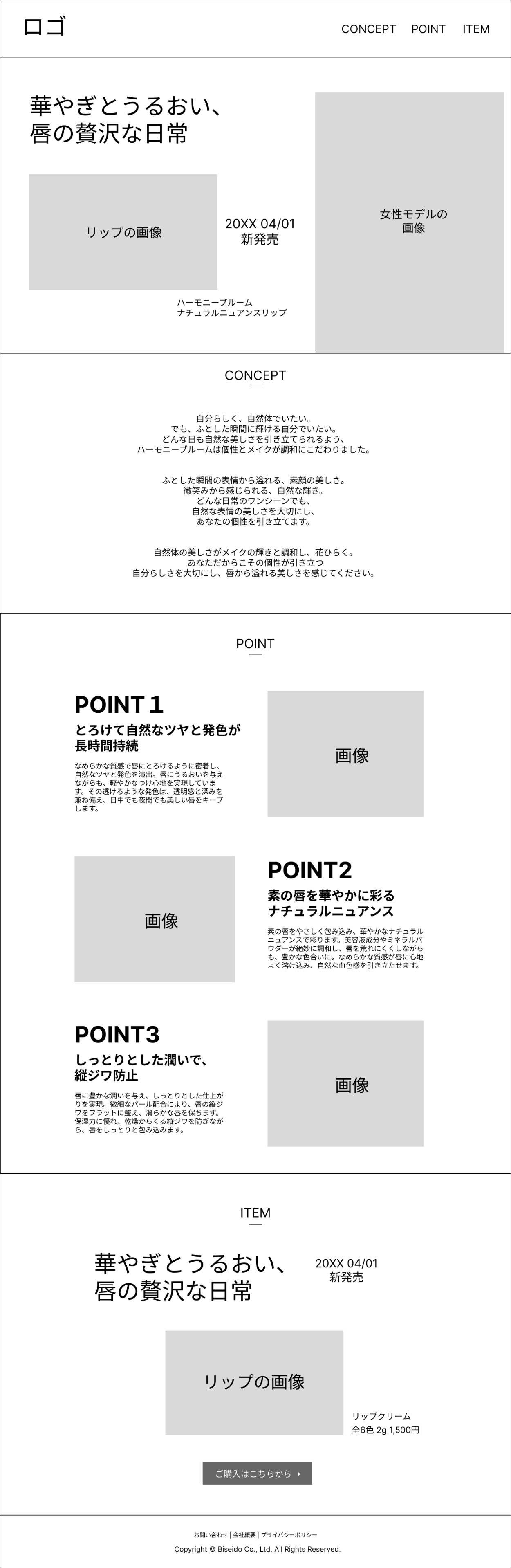 〔課題〕デザインカンプ制作 sako_designer Webデザイナー OVERVIEW Hertechの課題で、架空のクライアントからの依頼内容をもとにFigmaでワイヤーフレームを作成し、それをもとにデザインカンプ制作に取り組みました。 YEAR 2024 制作物ワイヤーフレーム