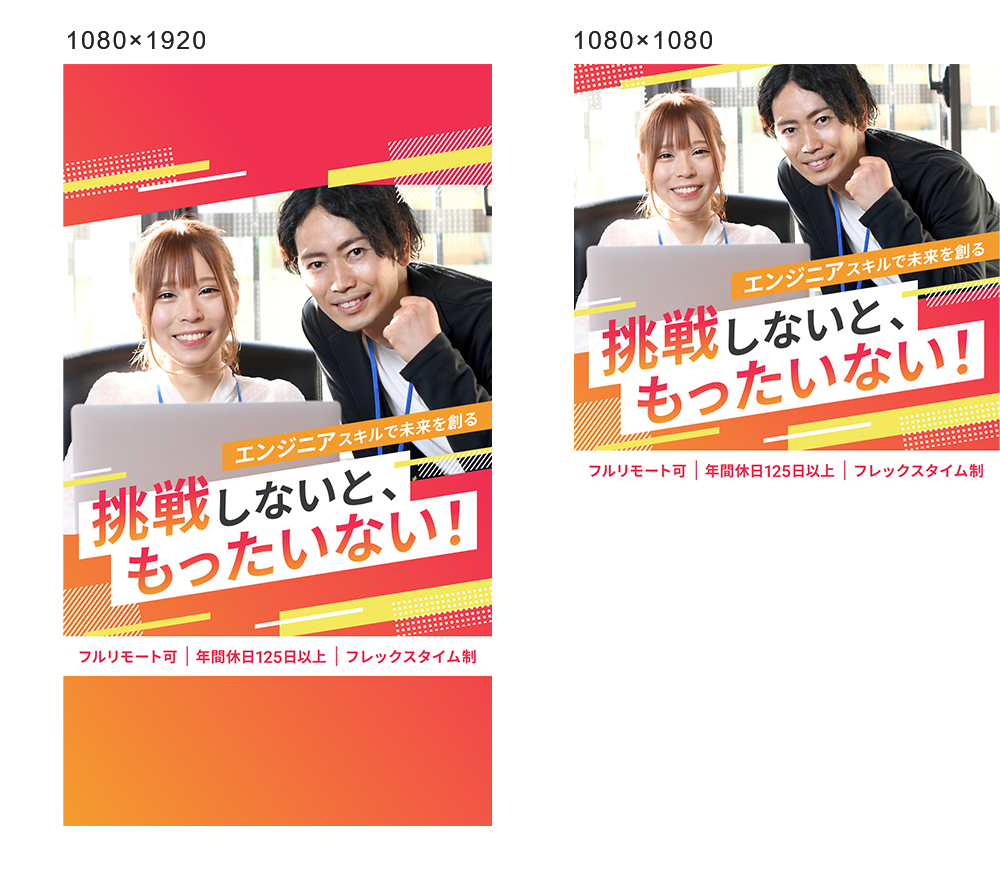 ・幅:1,080px ✖高さ:1,920px、幅:1,080px ✖高さ:1,080px