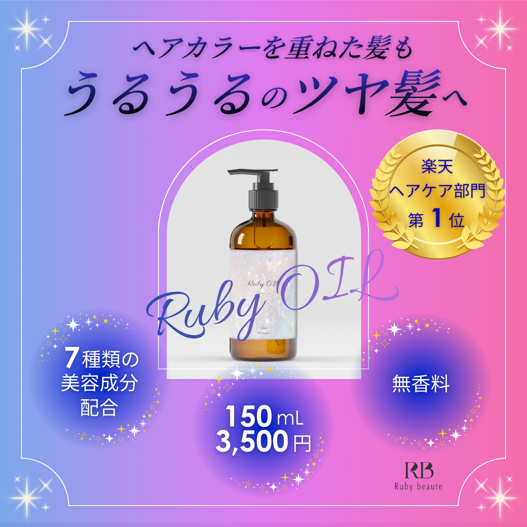 HerTech社 架空案件バナー作成 taeko gamou Webデザイナー 兼 臨床検査技師 OVERVIEW 新作ヘアオイルの商品LP誘導バナーの作成 YEAR 2025 同じテーマで配色を変えてみました。