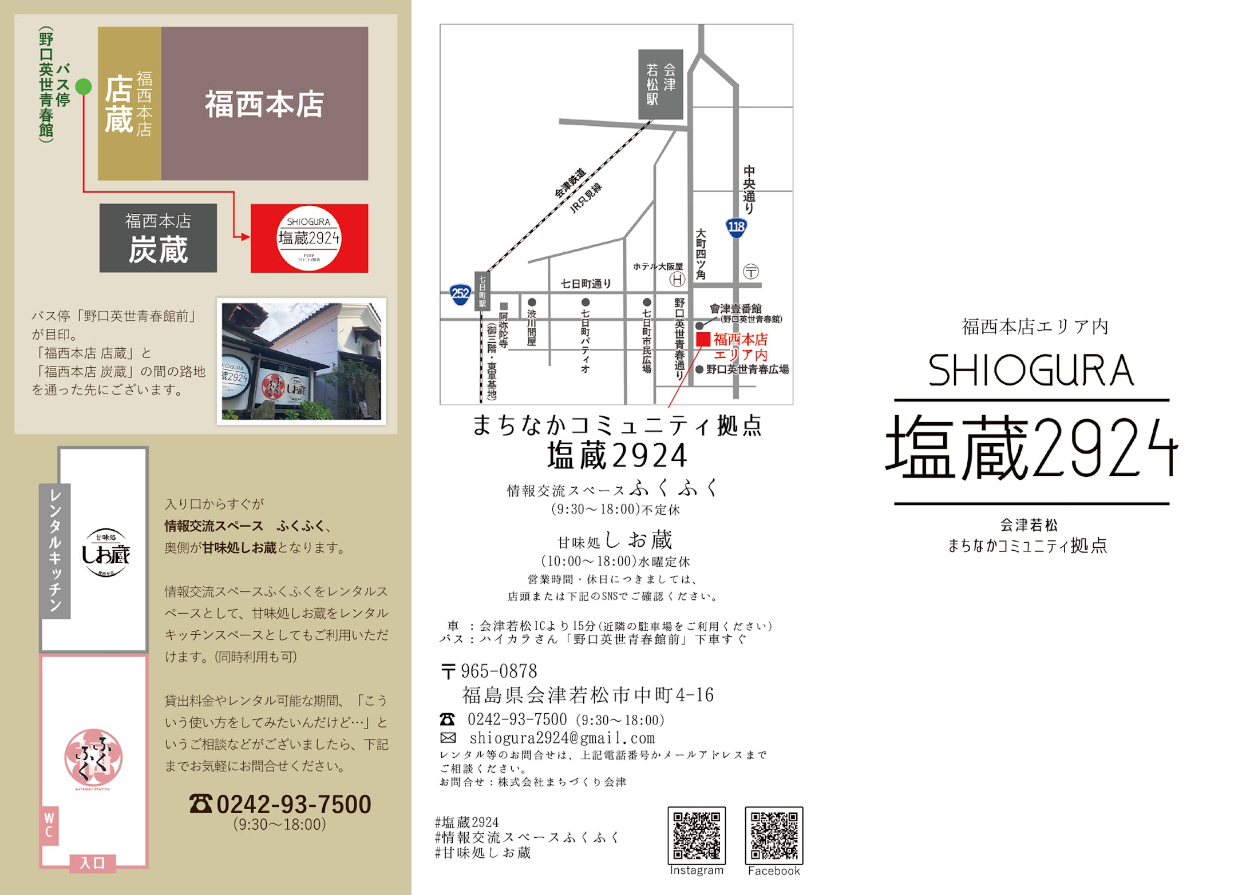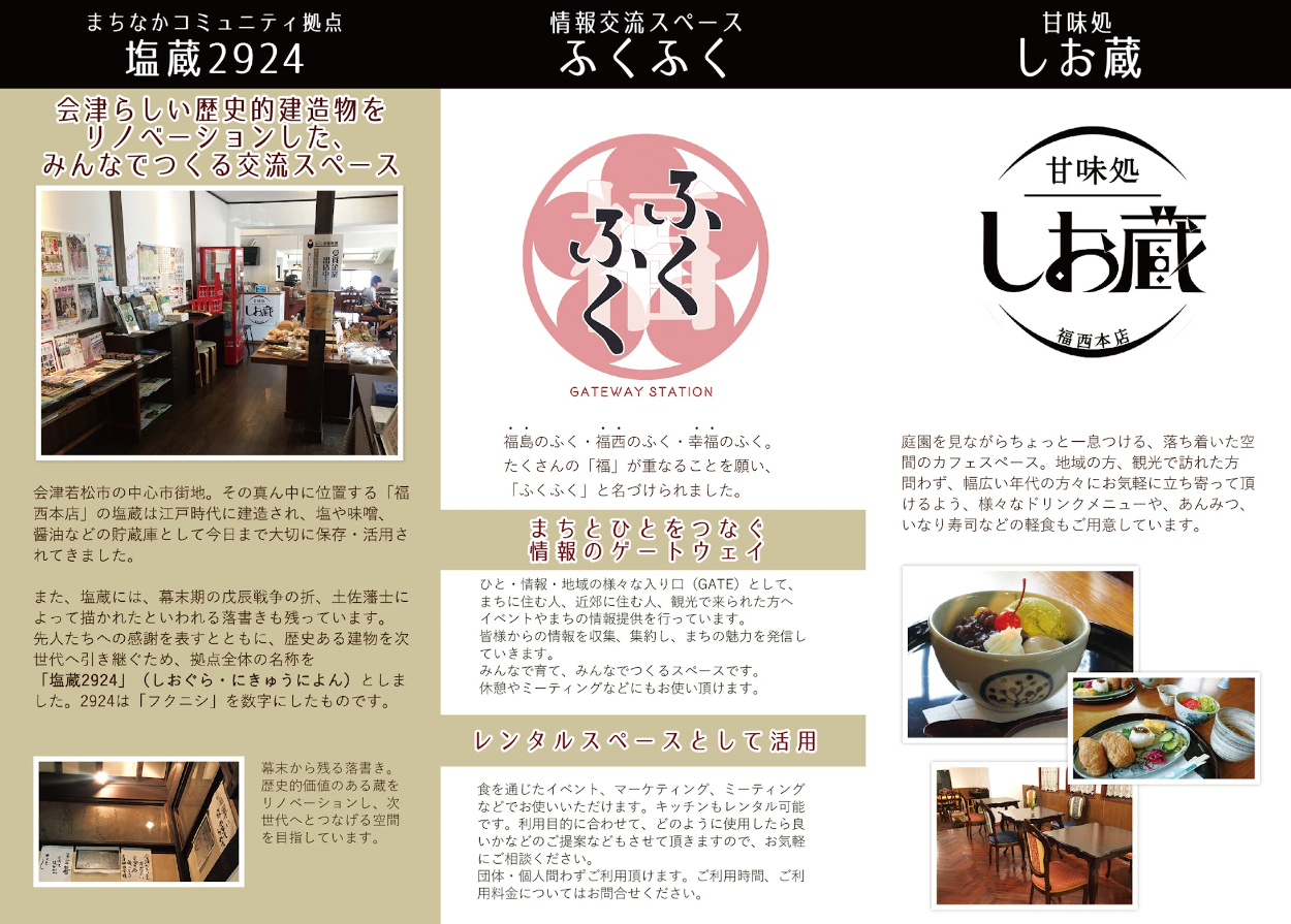 福島県「塩蔵2924」「甘味処しお蔵」「コミュニティスペースふくふく」の3店舗のロゴ制作を担当いたしました。