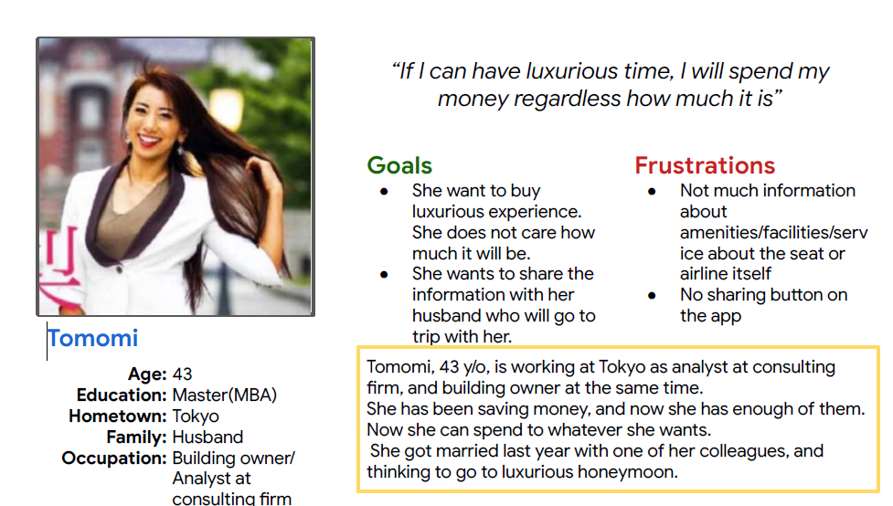 友人が新婚旅行をする際、飛行機の予約を取る上で「チケットを買う前に夫と情報シェアしたいのだけど、シェアするボタンがない!」「ちょっと良いフライトを予約したいのに、アメニティや設備の情報が少なすぎる。具体的にどこがエコノミーと違うのか分からない」と嘆いておりました。