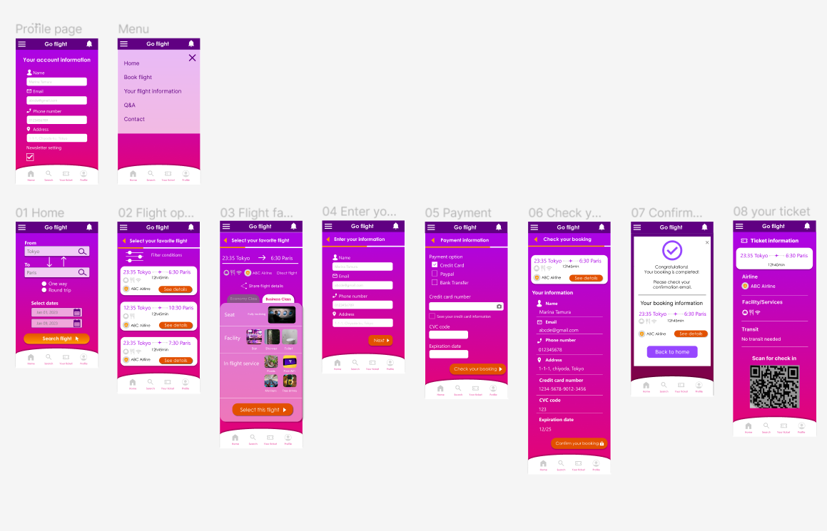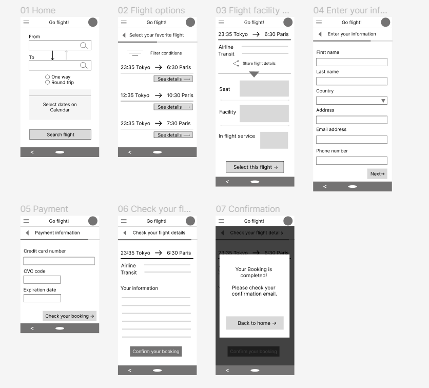 これを元に、必要な情報を洗い出し、WF制作&ラフのプロトタイプ制作を行いました。