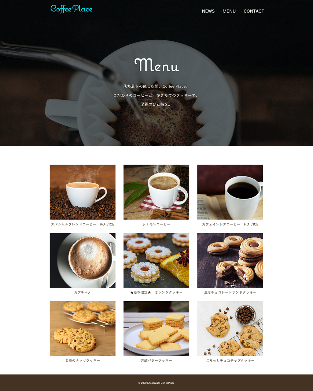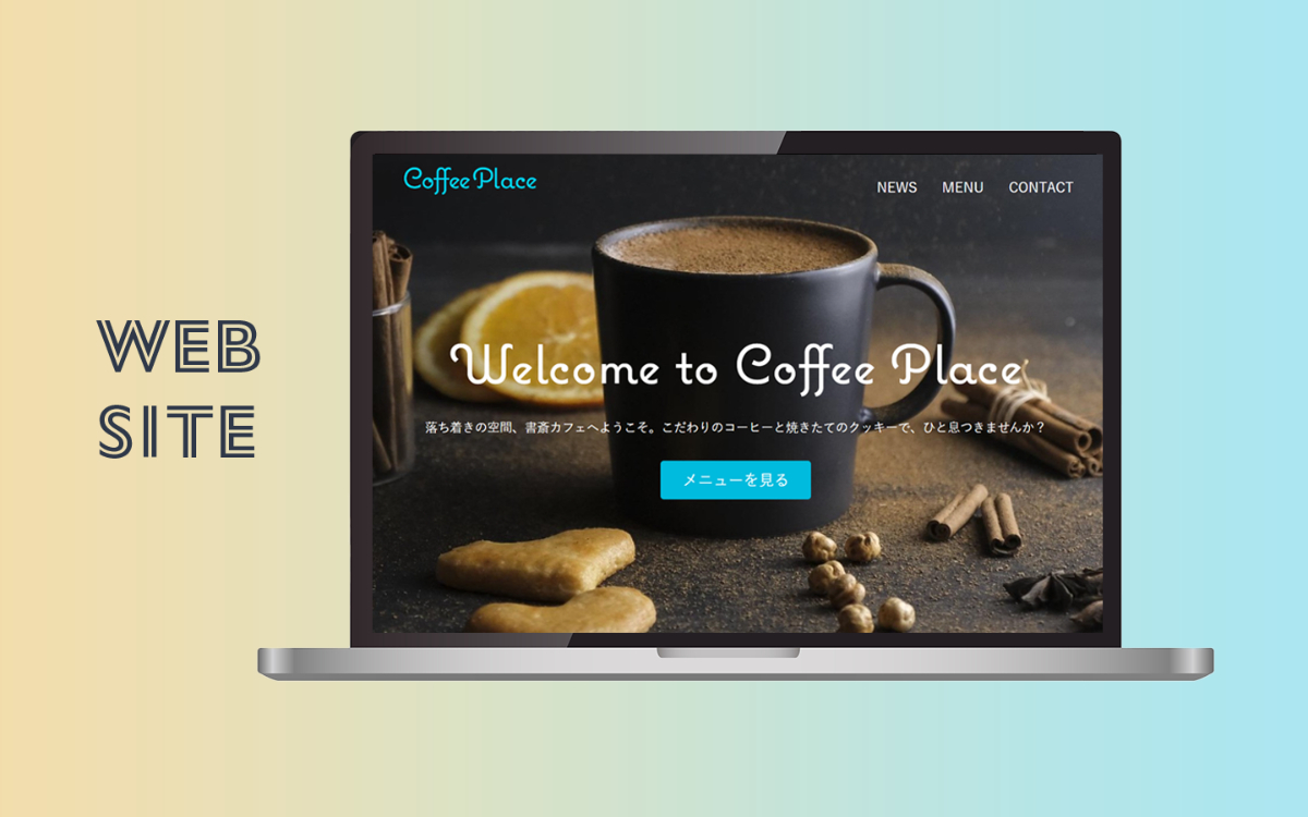 - 茶・白・水色を使用し、男女問わず「お洒落なカフェ」と感じてもらえるデザインを意識して制作しました。