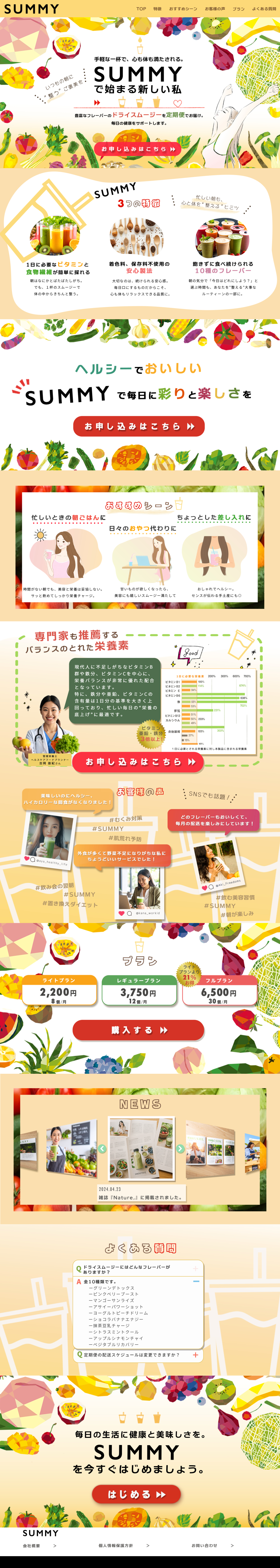 スムージーの定期配送便「SUMMY」のPC版LPを制作しました。