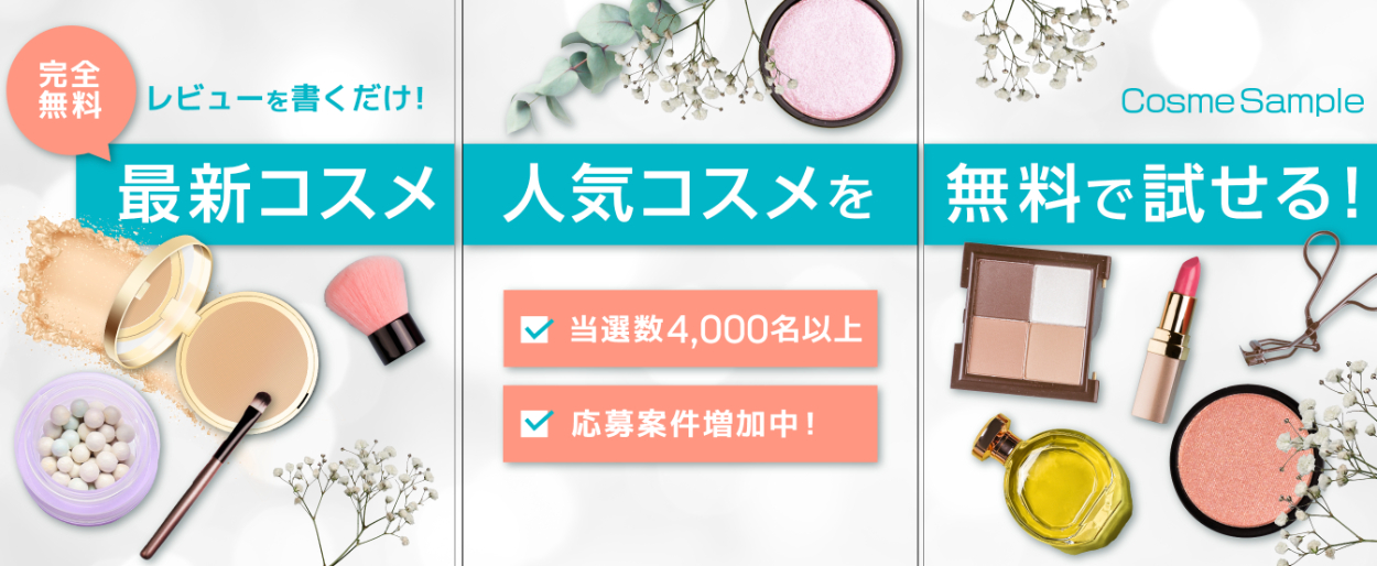 Cosme Sampleって何?が解決できるように、簡潔に、わかりやすく、3秒で理解できる程度の要素を入れています。