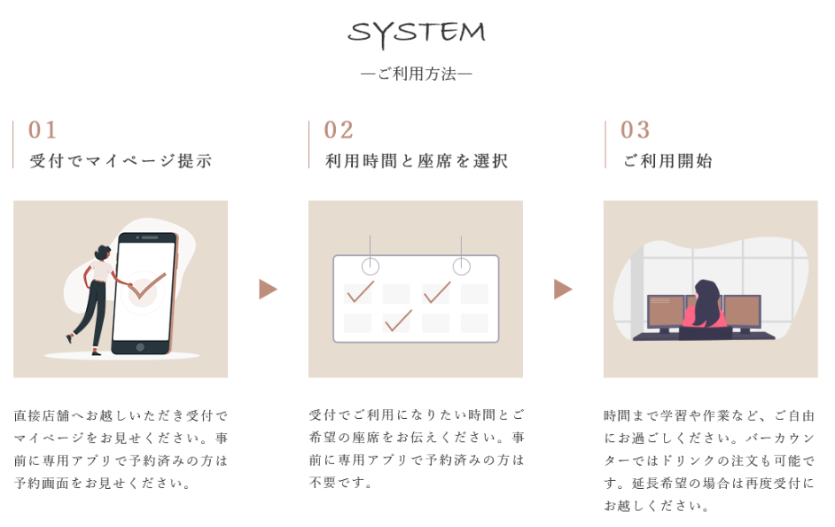 追加コンテンツ。「SYSTEMー利用方法ー」を読んで専用アプリの用途を認知したユーザーがアプリをDLすることを想定して、「SYSTEMー利用方法ー」の下にDL促進コンテンツを配置。ユーザーのアクションをもう一押しする工夫としてアプリだけの特典がある文言を追加しました。