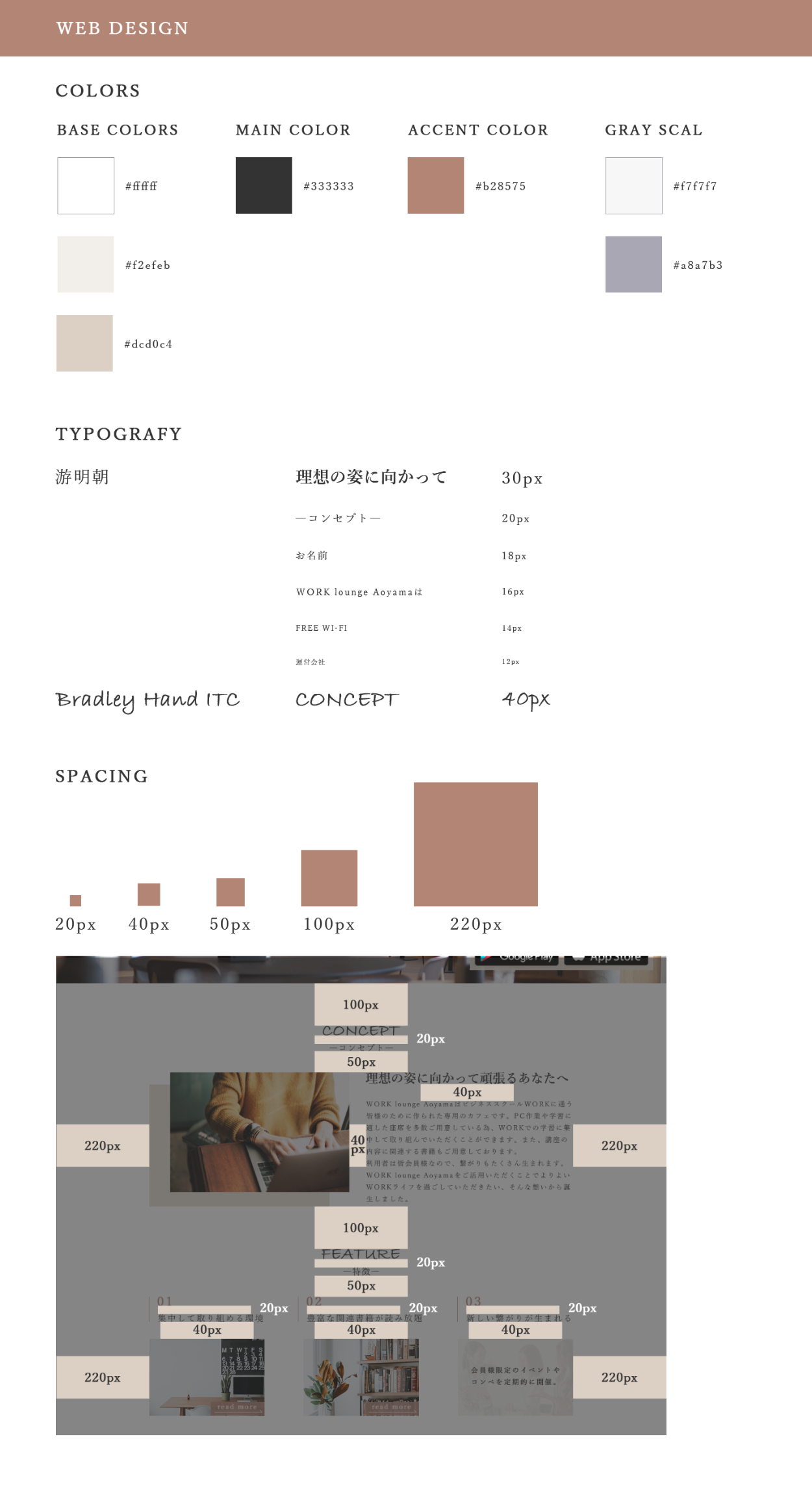 親近感がありつつ20代~30代女性に好まれる落ち着いたイメージを出したかったので 、ベージュやブラウンに近いスモーキーピンクを選択。