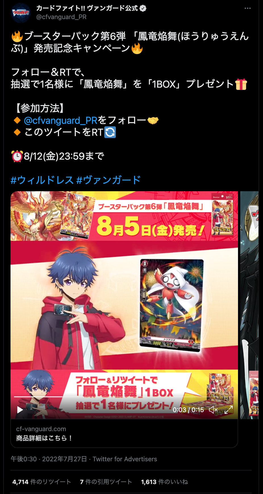 ▽ツイート:https://twitter.com/cfvanguard_PR/status/1552134180317696005