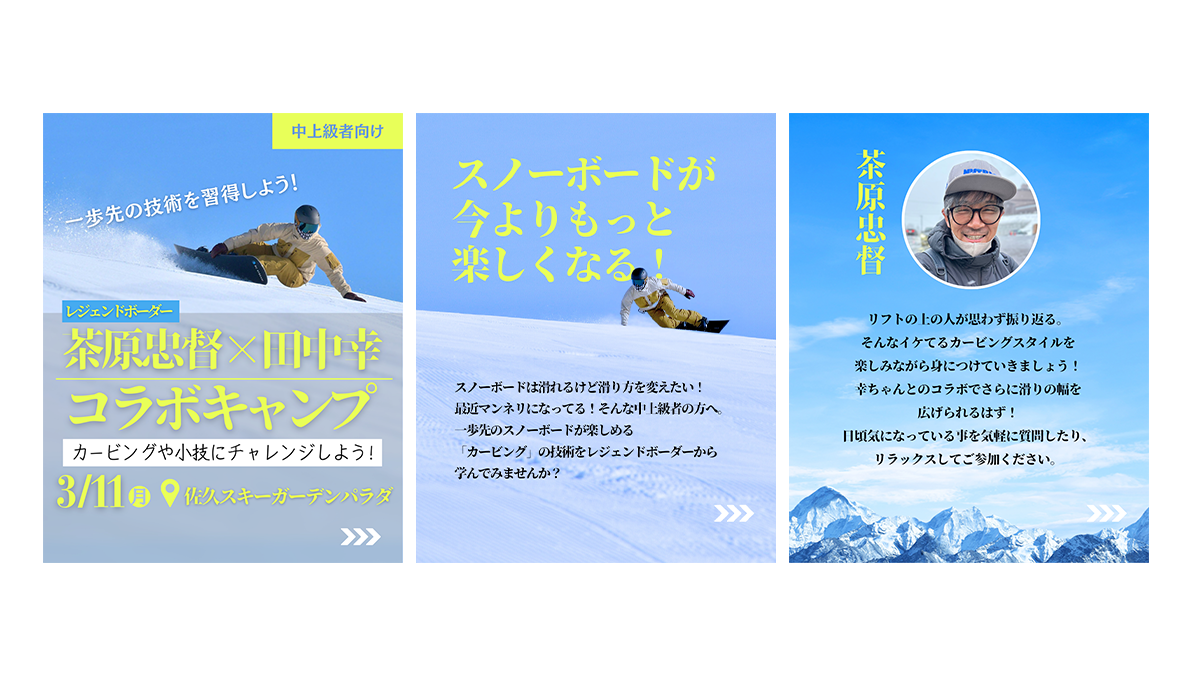 既存のフォロワー、スノーボード中級者以上、男性が多め