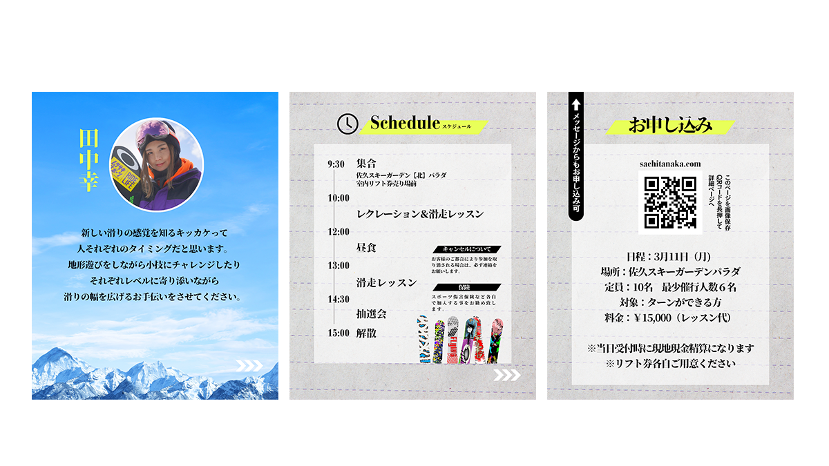 1枚目をパッと目を引くようなスポーティーなイエローの文字を使い
