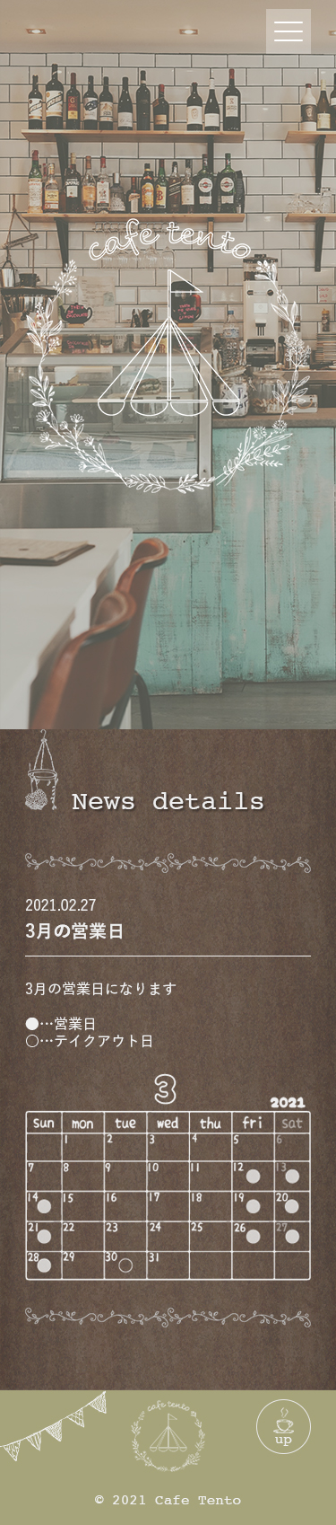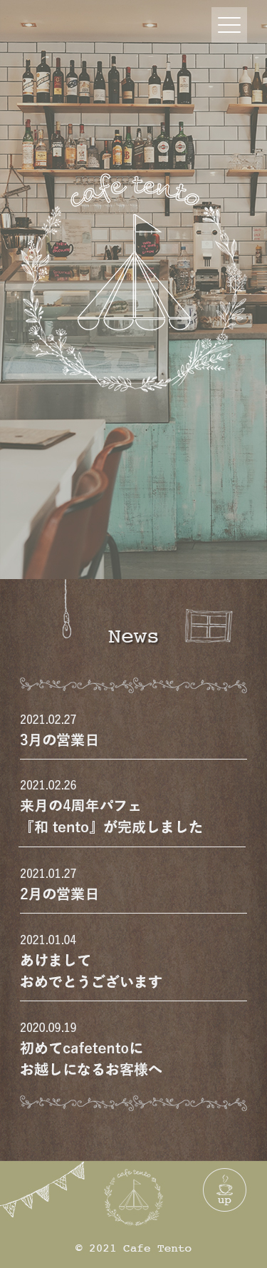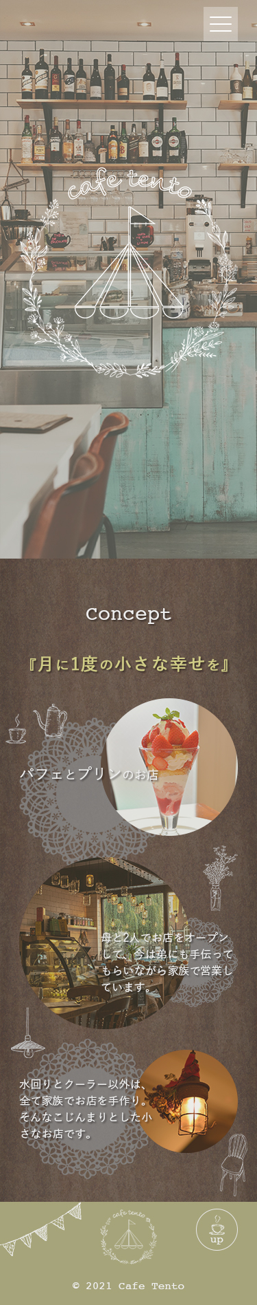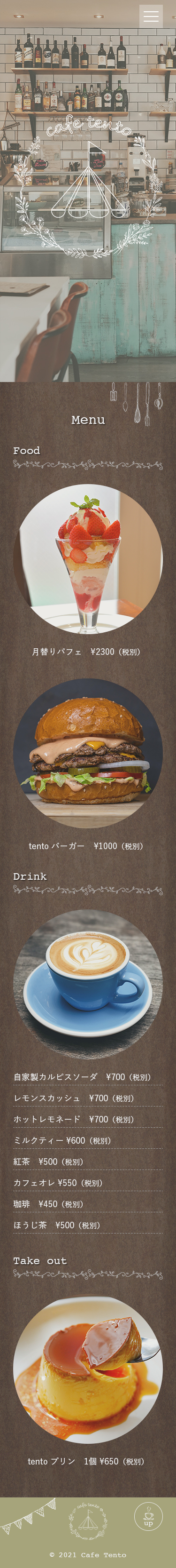 cafe tento Nishikawa Marine Webデザインを勉強中 OVERVIEW スクールの卒業制作で、webデザインからコーディングまで仕上げました。レスポンシブ対応もしています。 YEAR 2021 Webデザイン( PC )Webデザイン( Mobile )