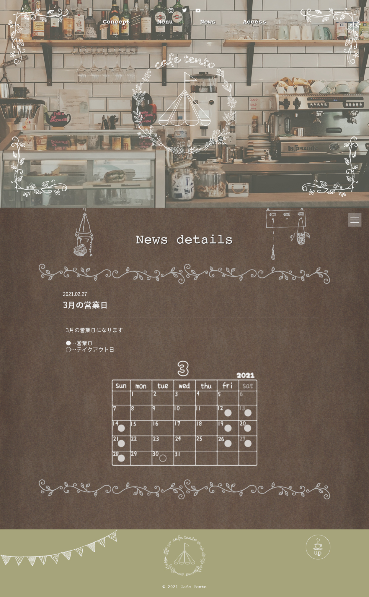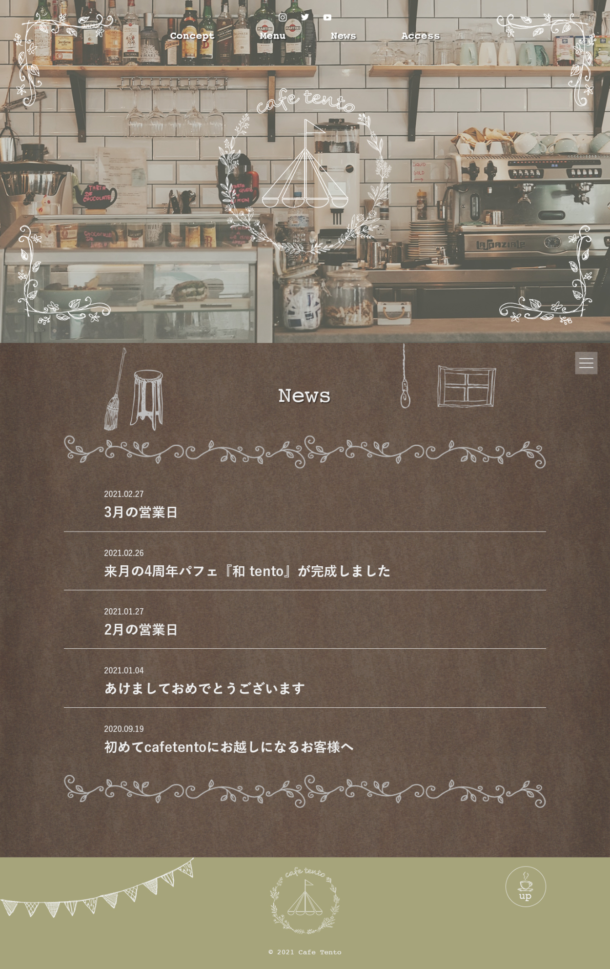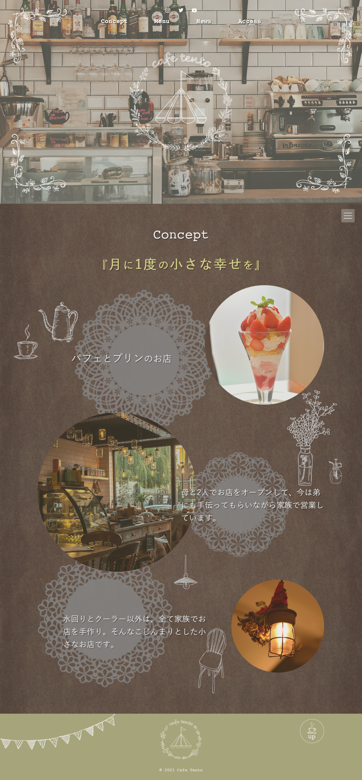 cafe tento Nishikawa Marine Webデザインを勉強中 OVERVIEW スクールの卒業制作で、webデザインからコーディングまで仕上げました。レスポンシブ対応もしています。 YEAR 2021 Webデザイン( PC )Webデザイン( Mobile )