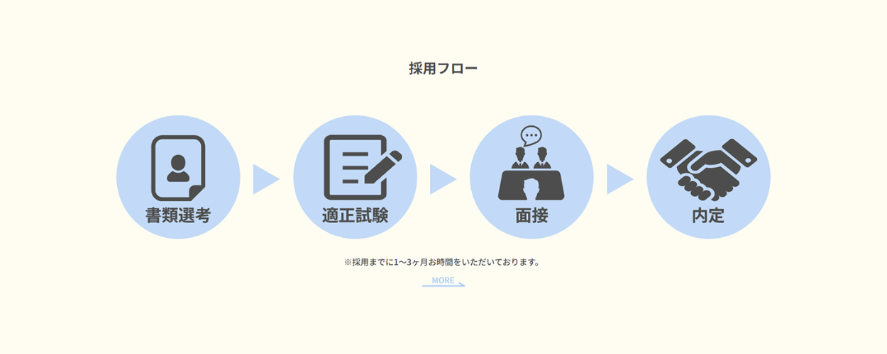 ・転職者にとって必要な情報である採用フローをアイコンを使って視覚的にもわかりやすく