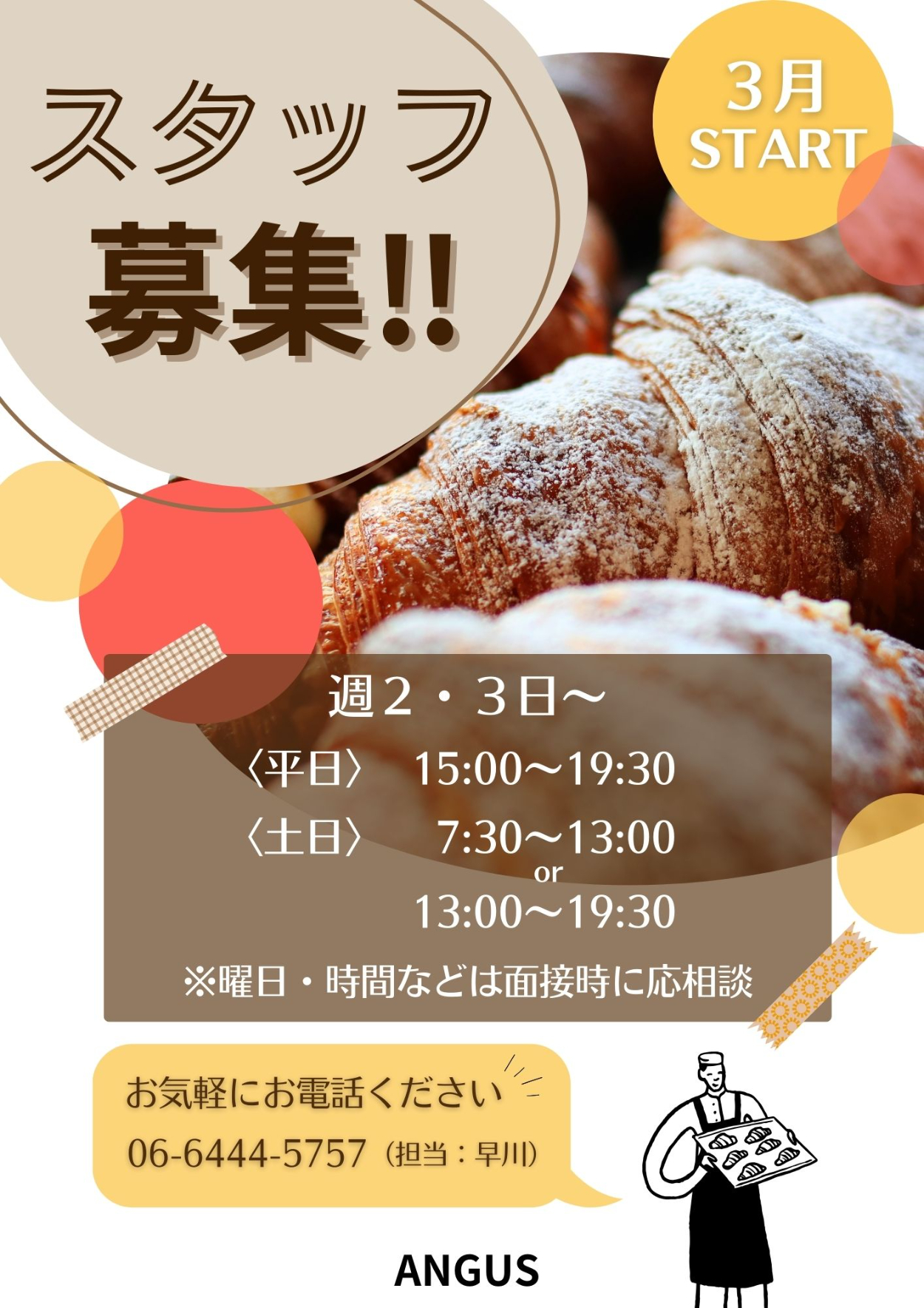 【ポスター】パン屋さんスタッフ募集/カフェメニュー
