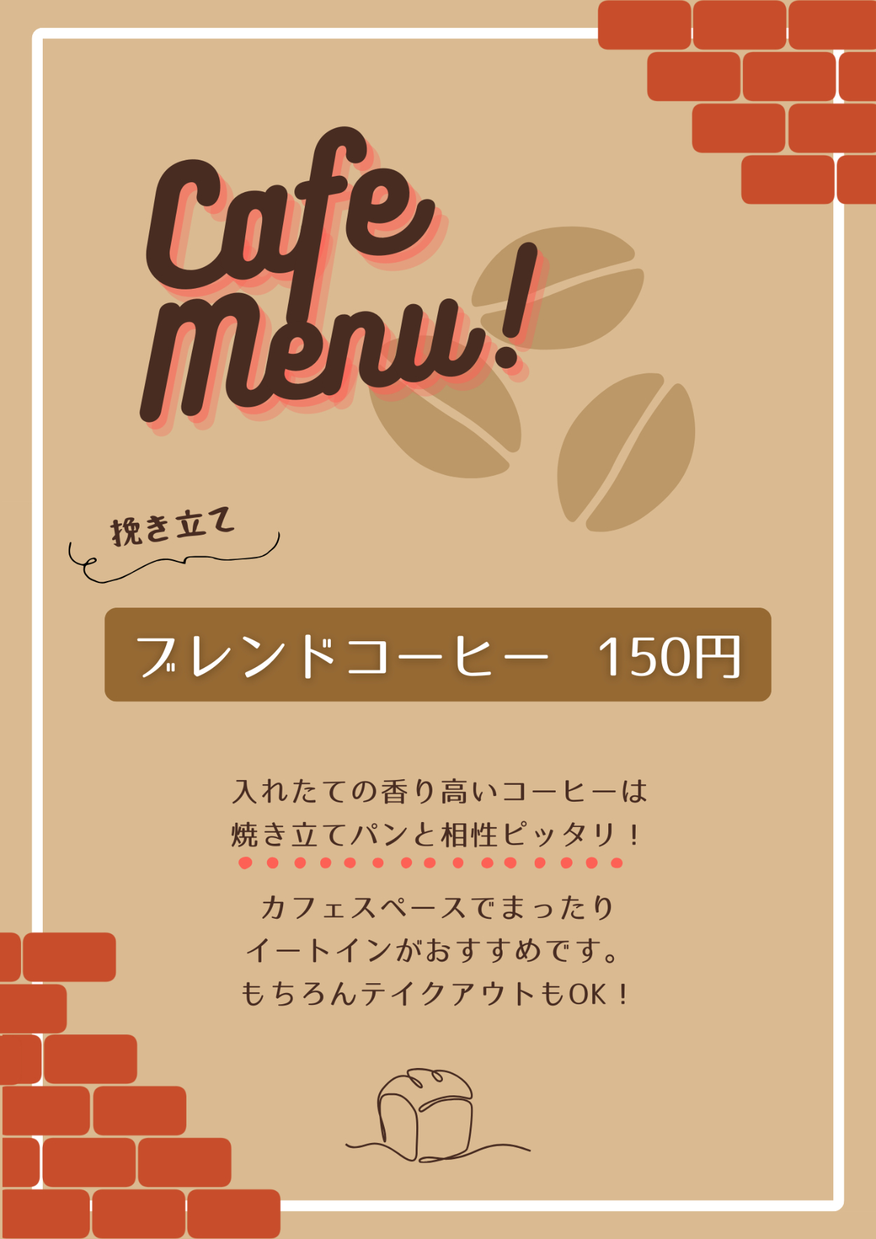 パン屋さんのスタッフ募集とカフェメニューの案内を制作しました。〈制作時間:各2時間/使用ツール:Canva〉