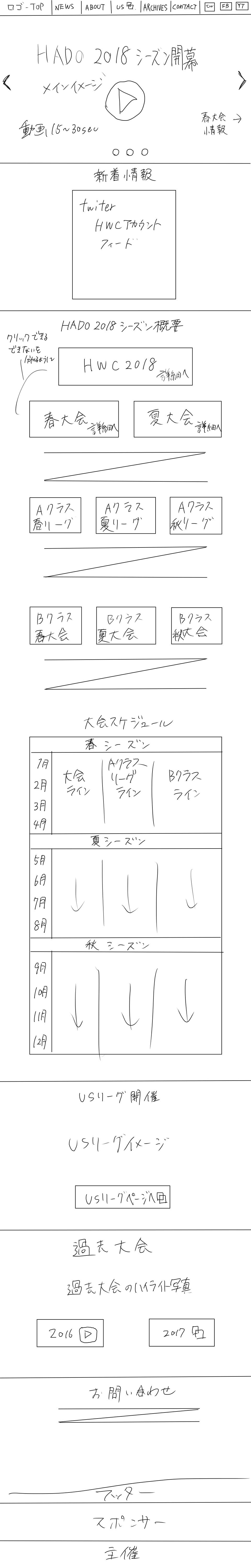 ・構成を洗い出し、手書きでトップページのレイアウトを作成。