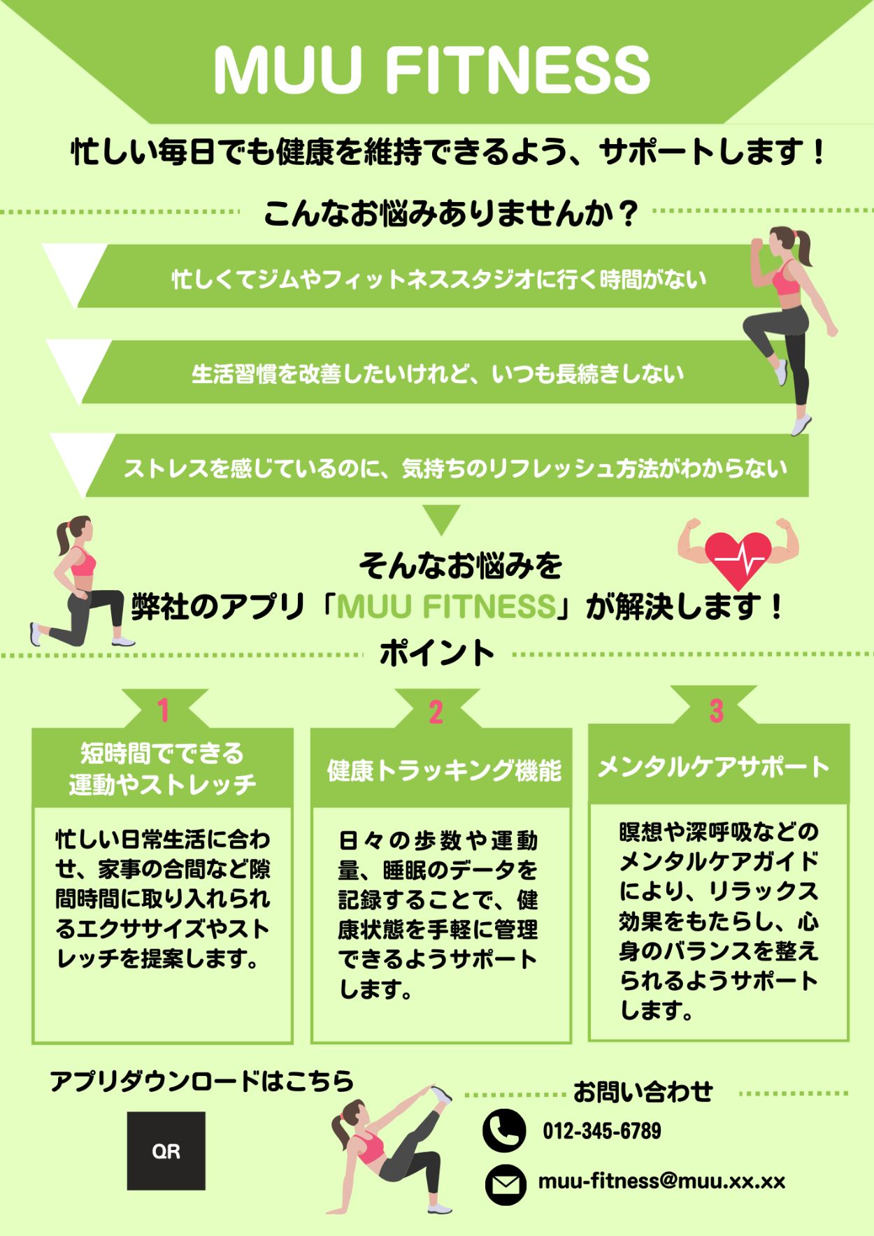 ・想定クライアント様など:アプリを宣伝しダウンロード数、利用者を増やしたいと思っているフィットネス経営会社担当者。